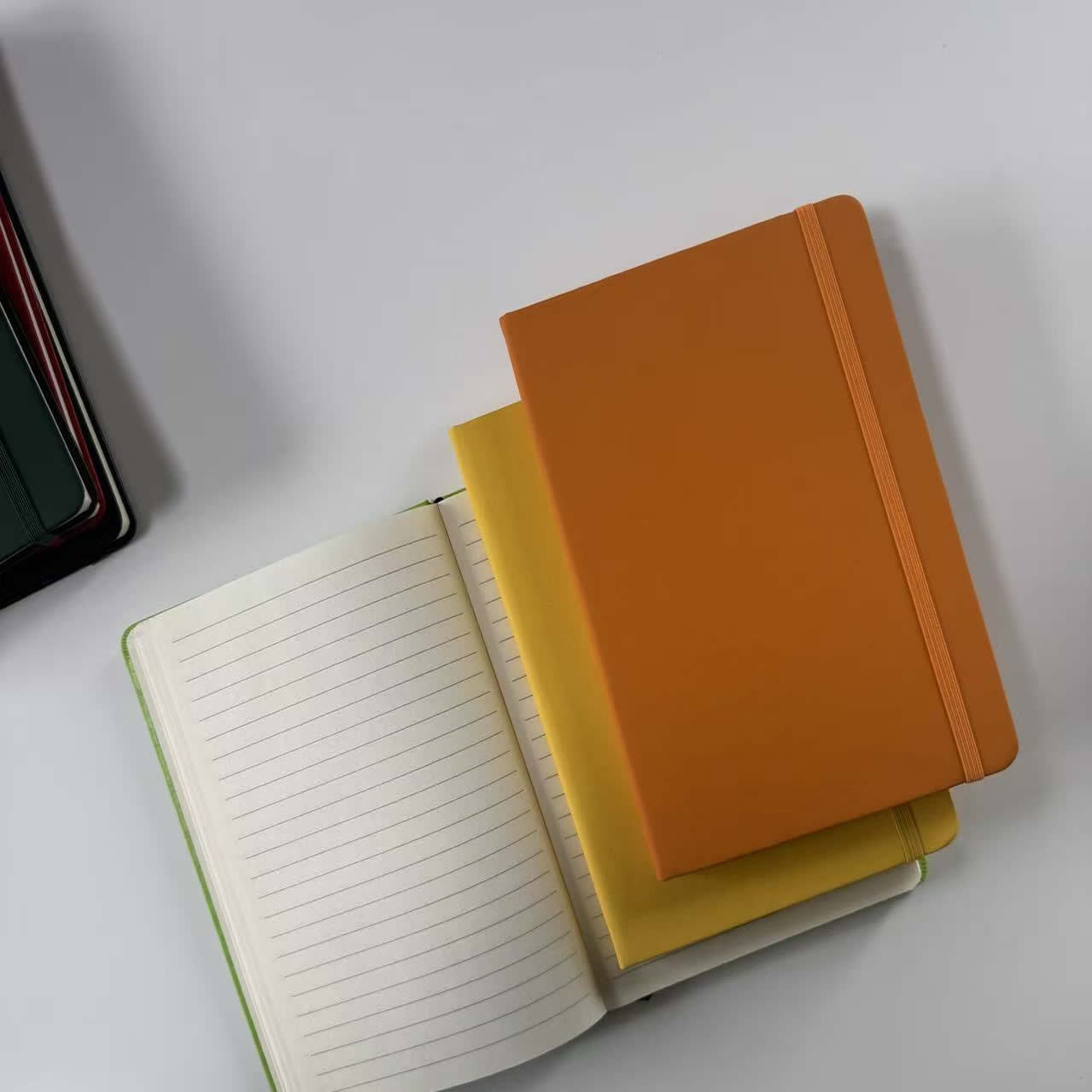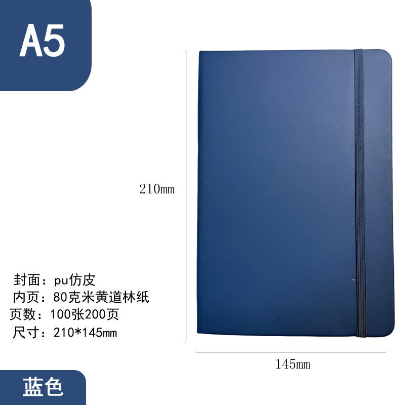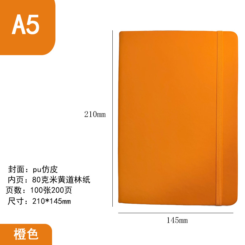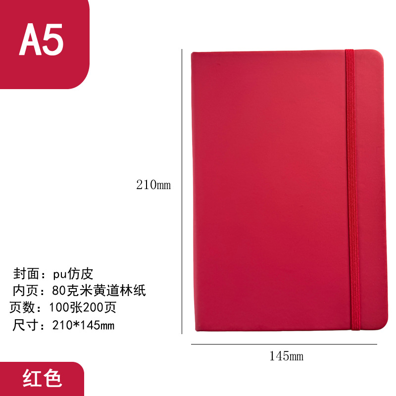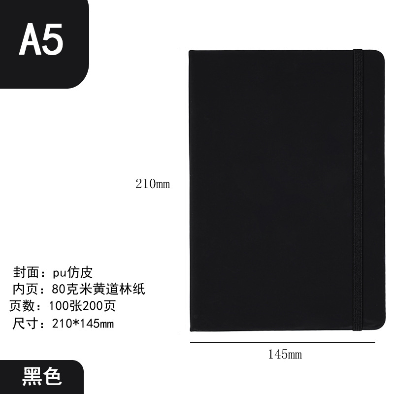 2pcs/set PU faux leather hard cover office business A5 notebook with strap and elastic band logo can be printed memo notebook