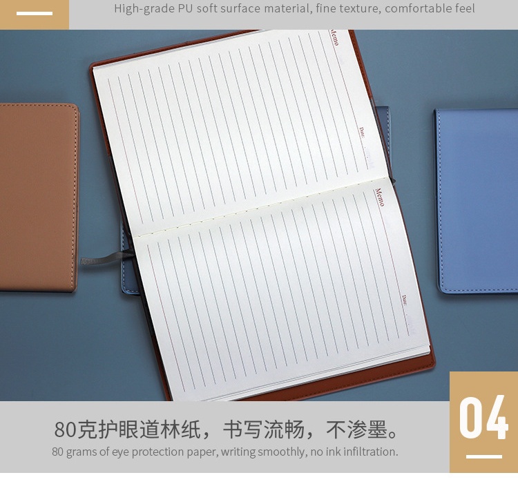 1pc Business PU soft leather notebook with logo printing leather paperback stationery notebooks