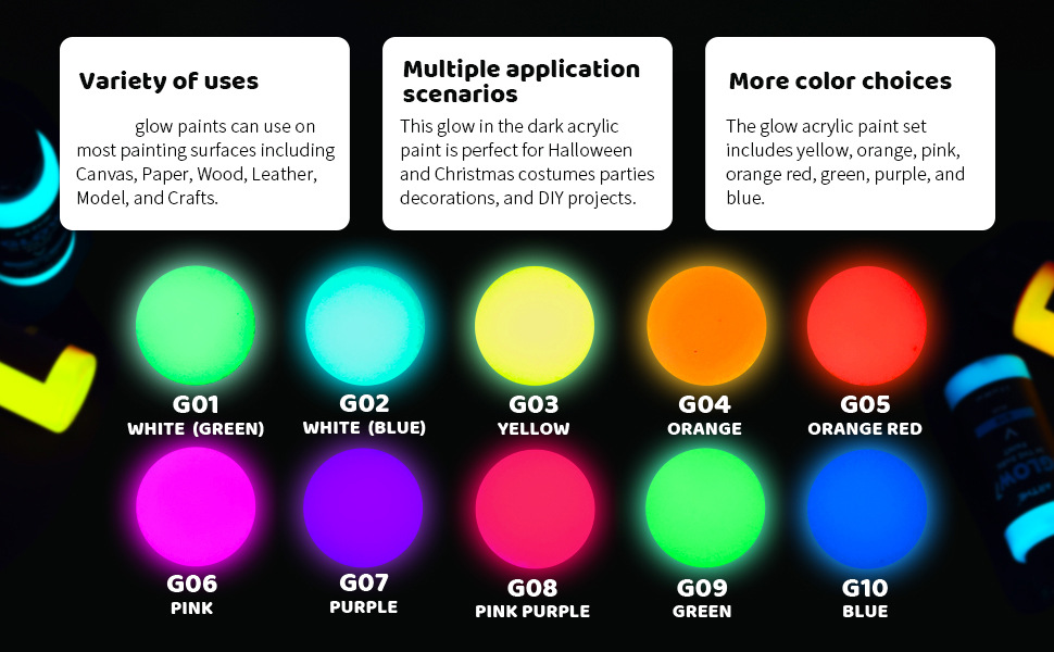 12pcs/set Super bright high-quality luminous paint hand-painted Halloween graffiti fluorescent paint suitable for clothes and shoes