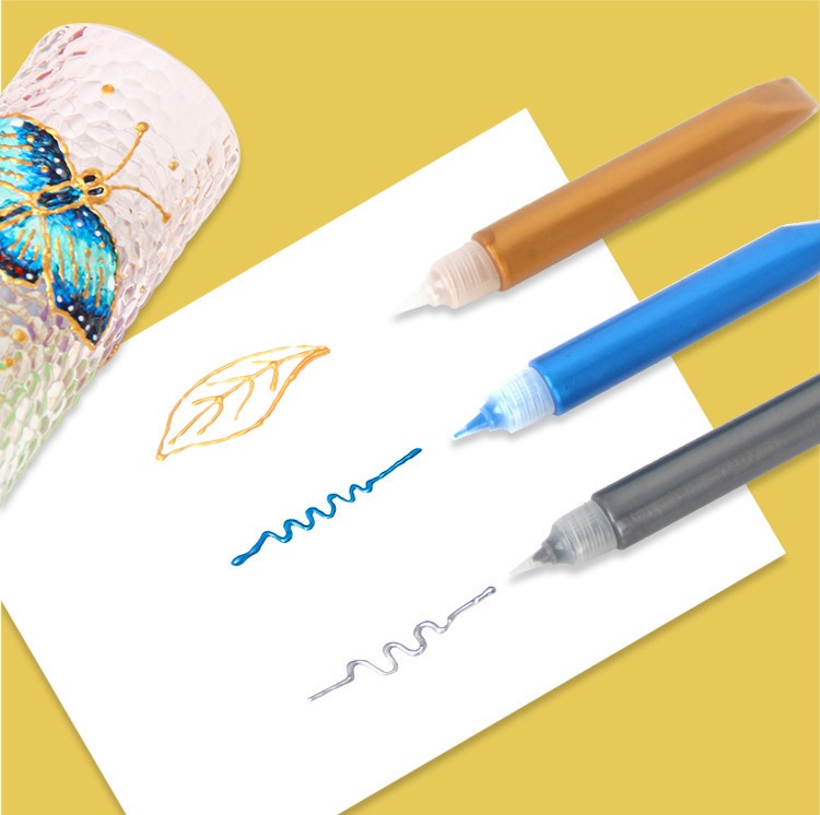 1pc 6ml Golden Outlining Pen No-Bake 3D Pearl Paint Ceramic Glass Paint Acrylic Paint Decoration DIY Painting