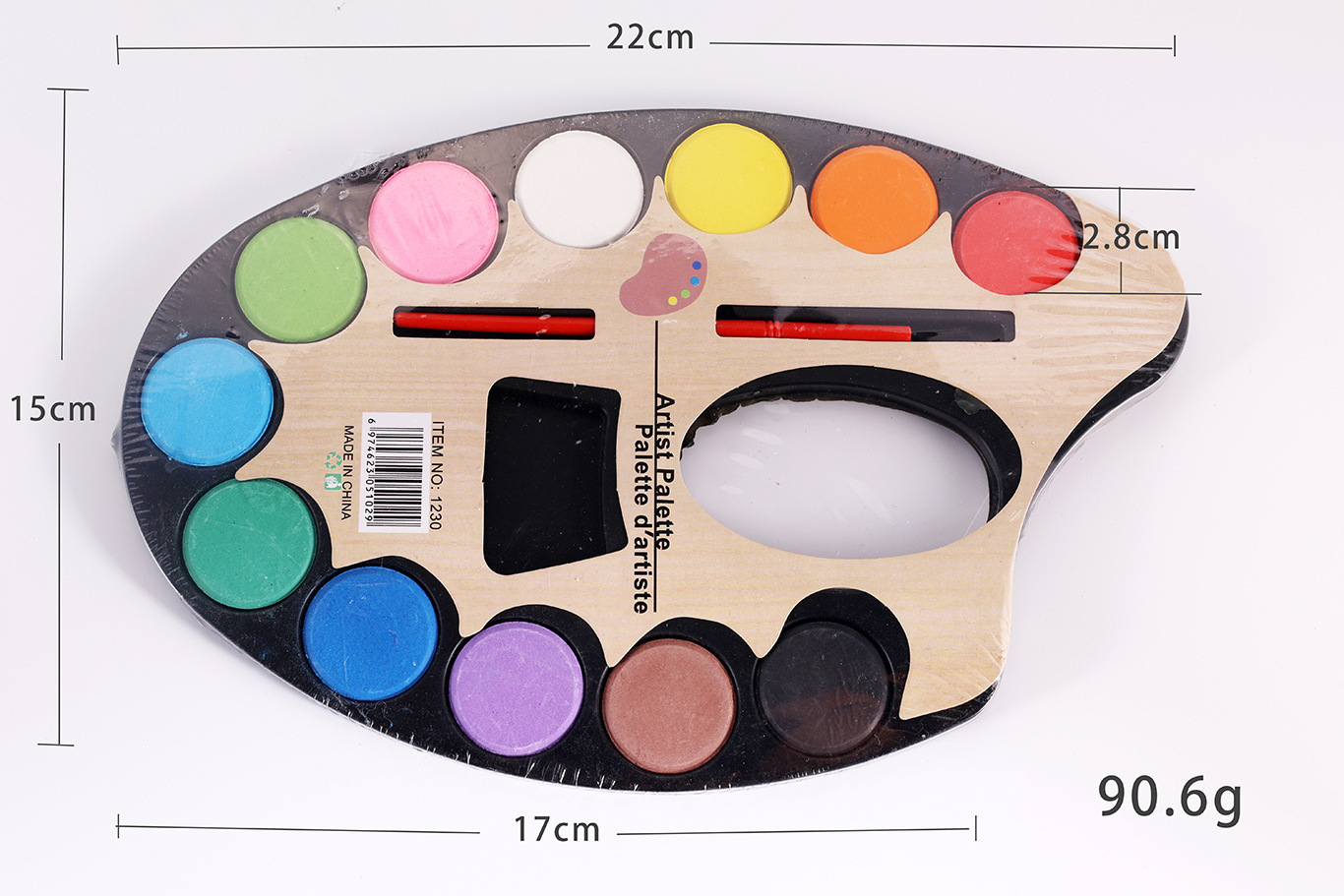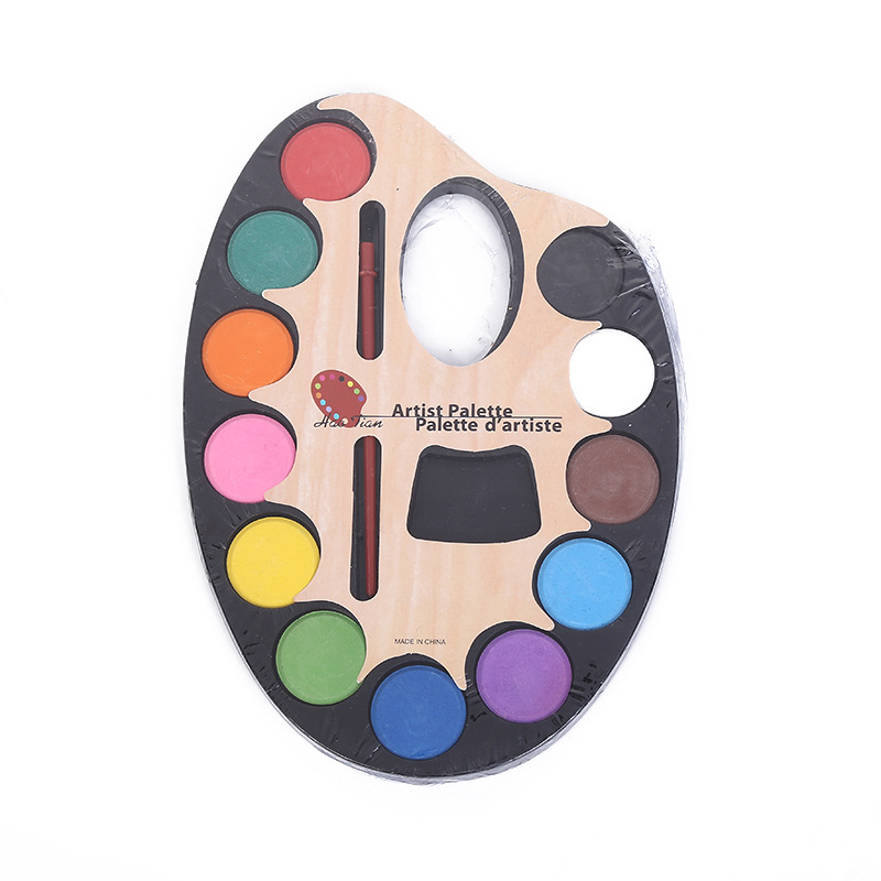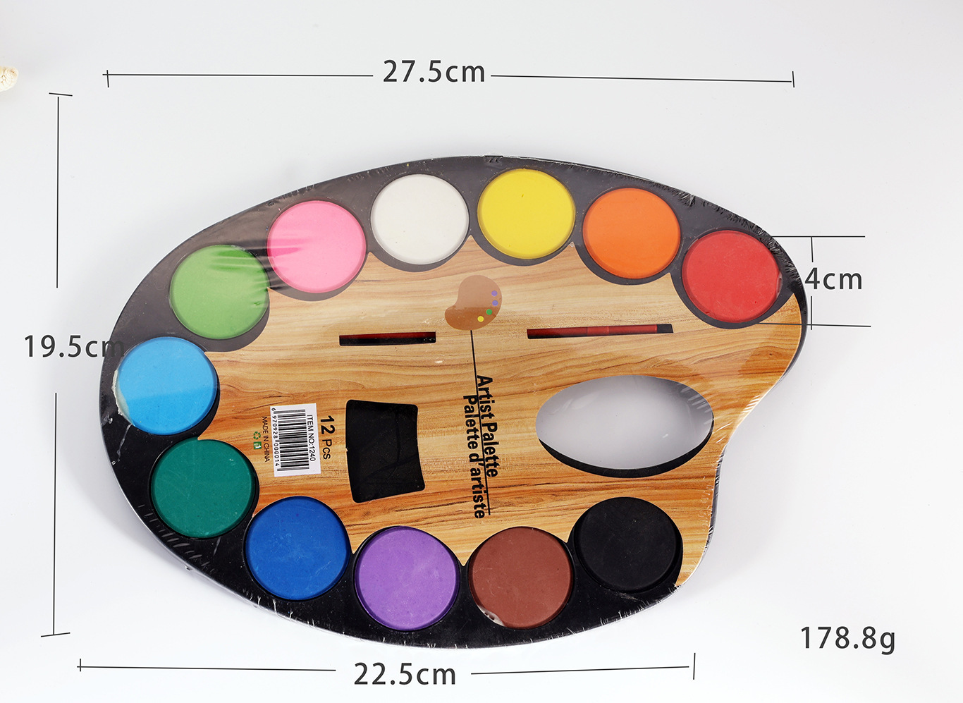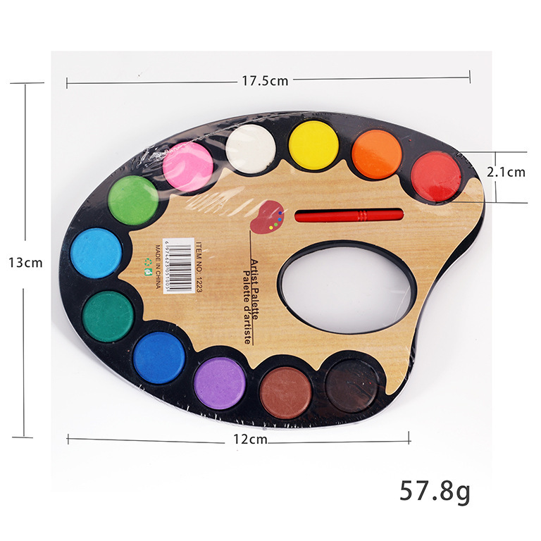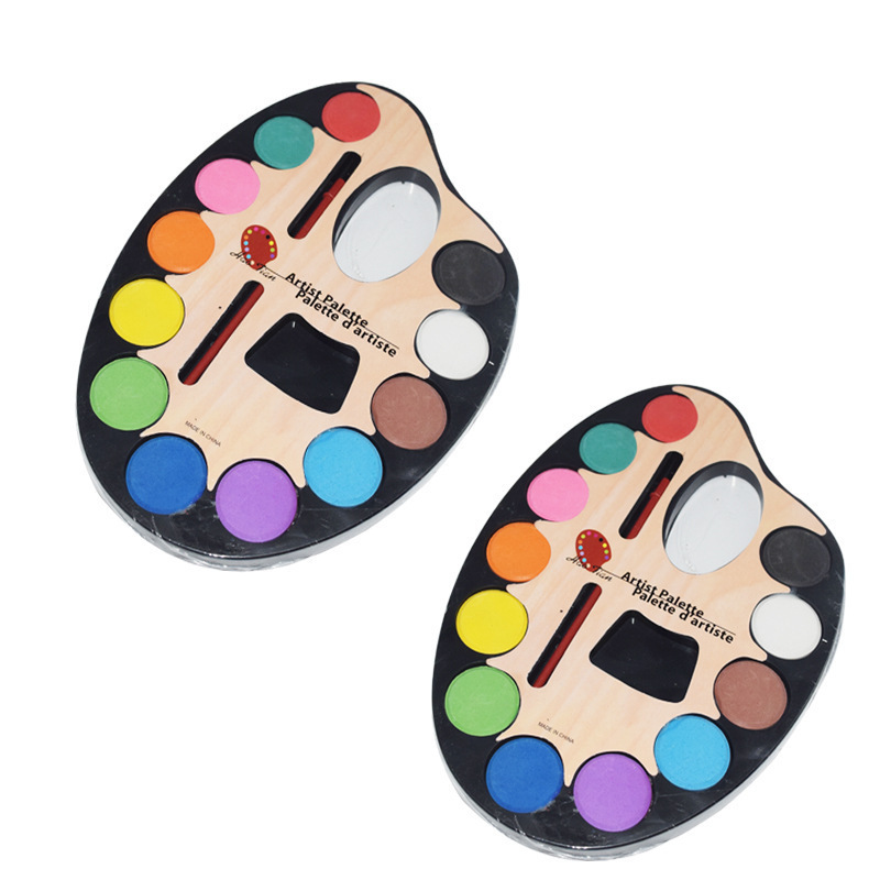 Children's Art Paint 12-Colors Large Palette Semi-Dry Paint Solid Powder Painting Set Gouache Paint