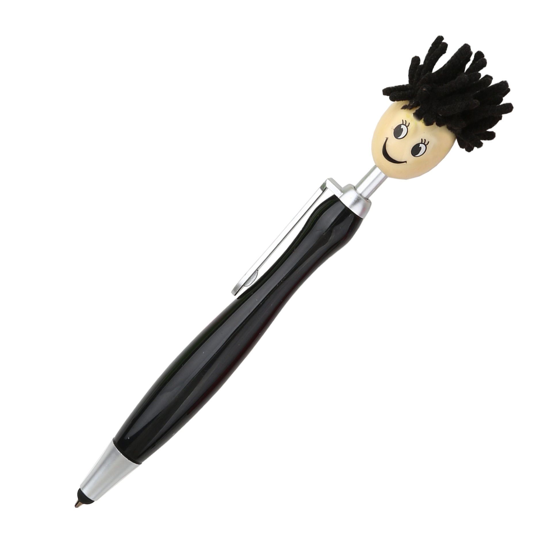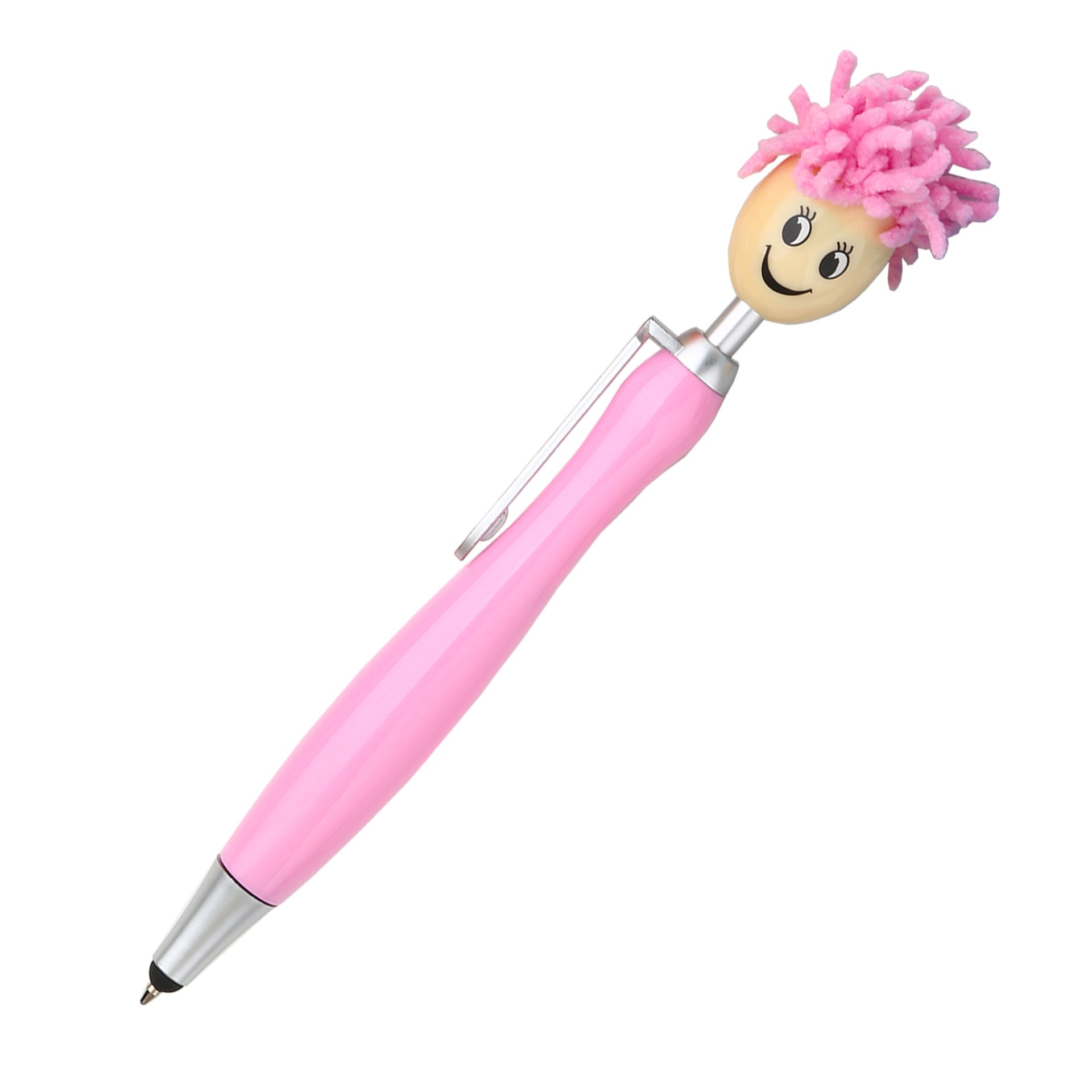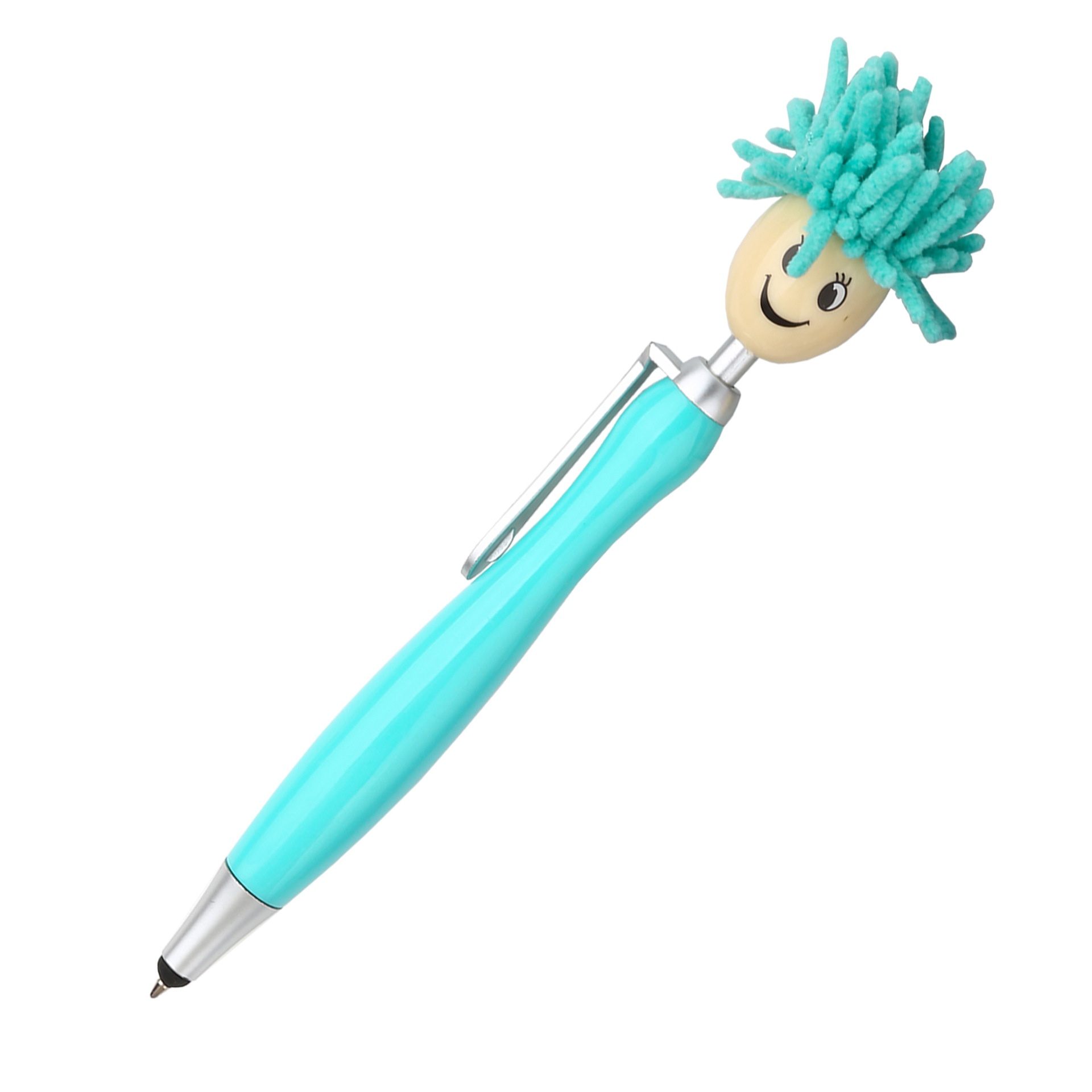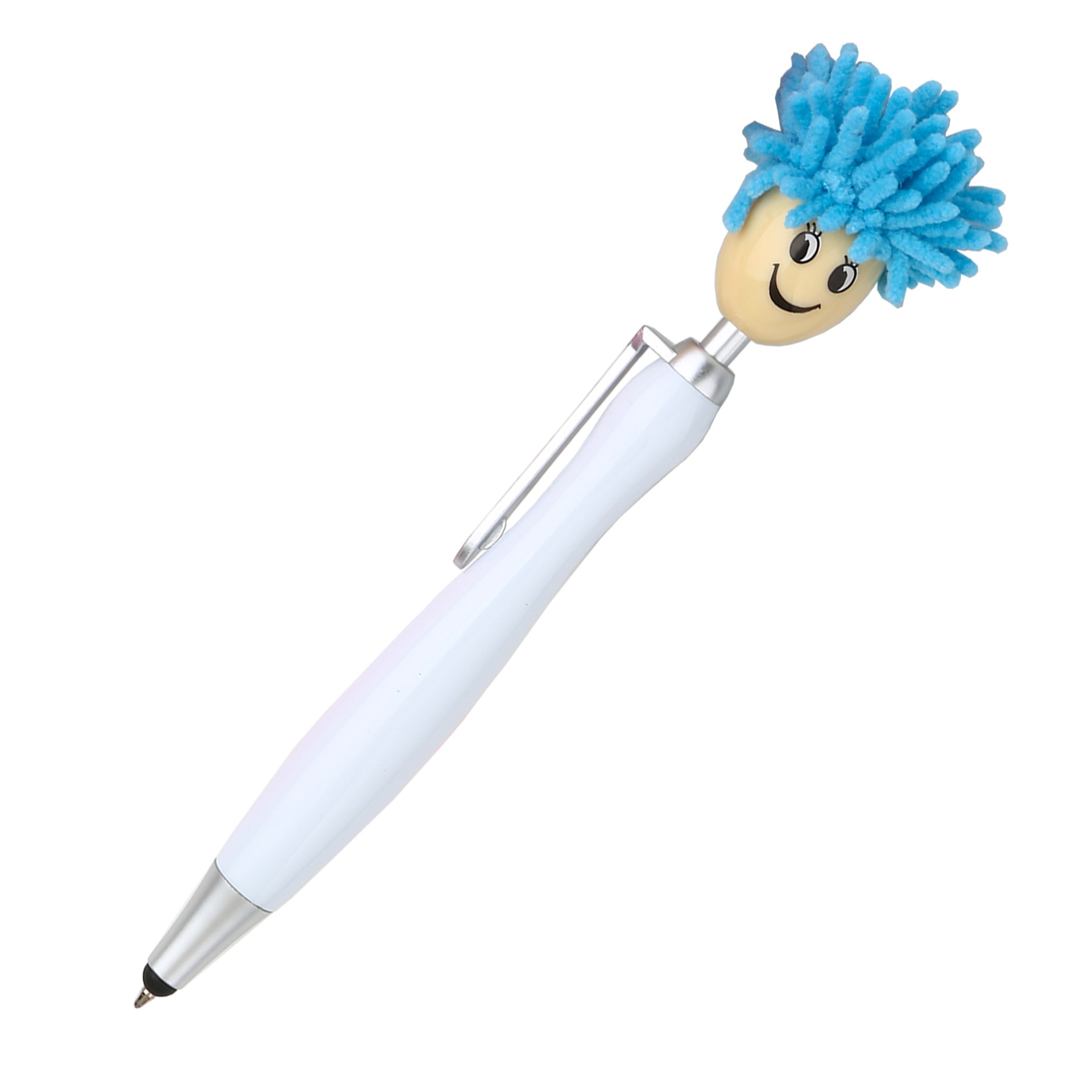 1pc Doll Head Plush Cartoon Hair Mop Smiley Face Portrait Fuzzy Touchscreen Ballpoint Pen