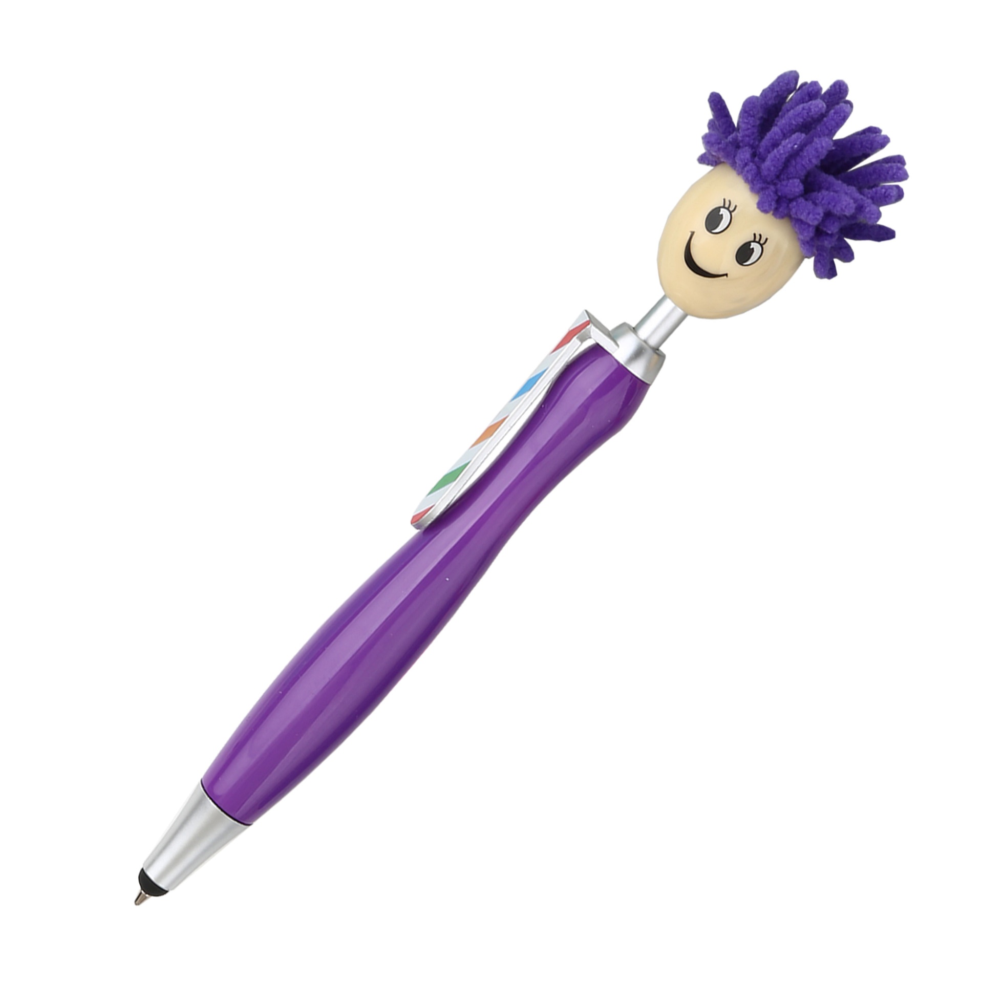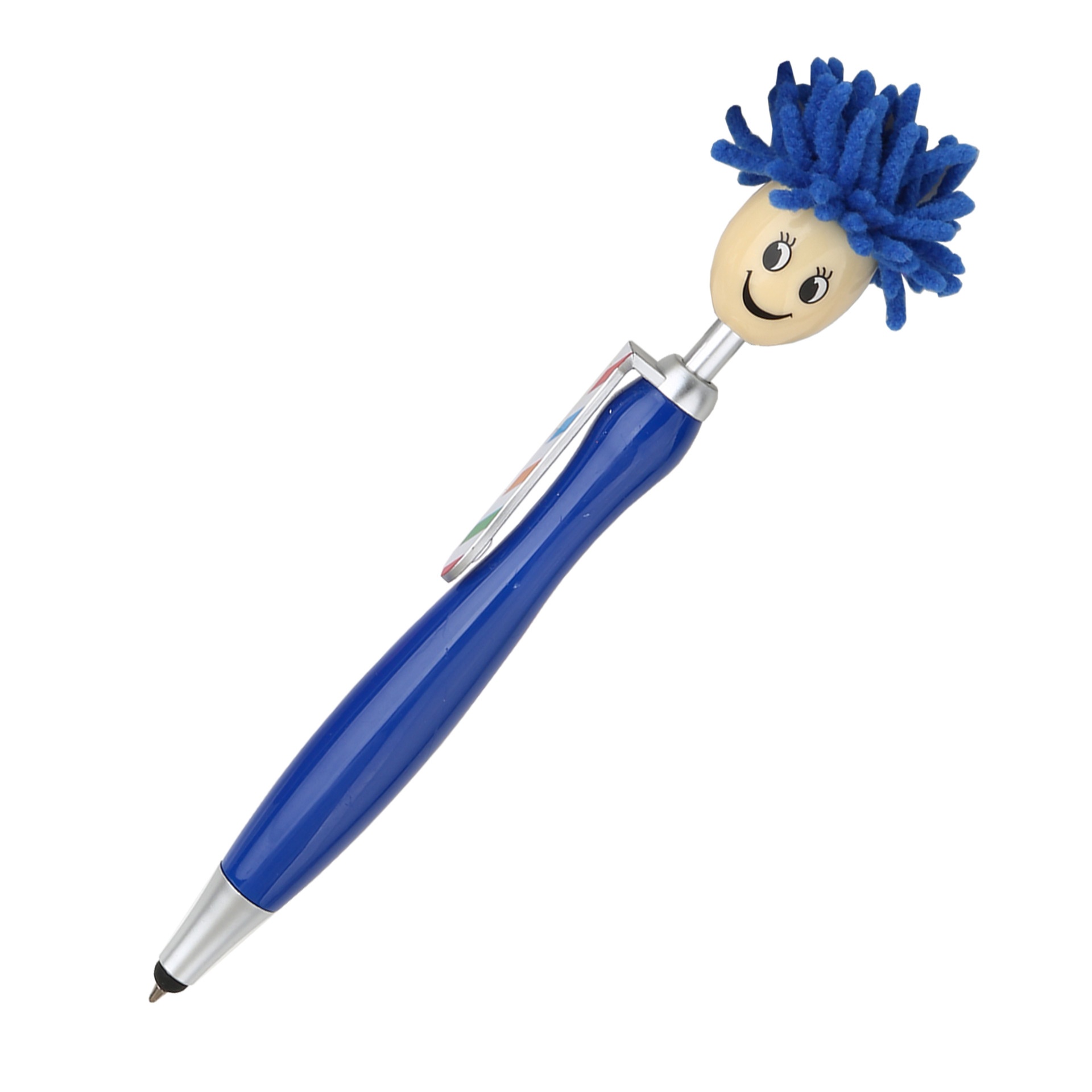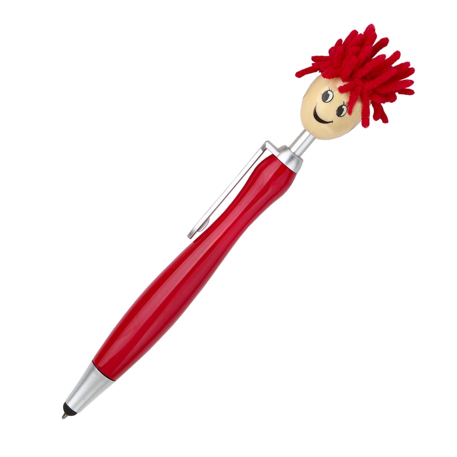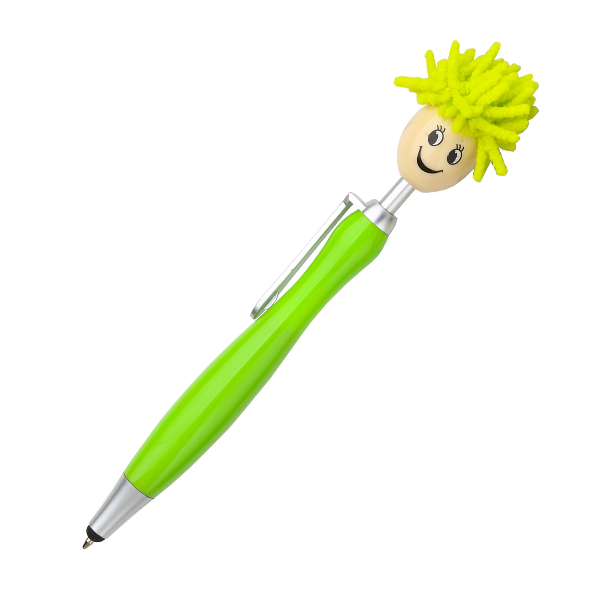1pc Doll Head Plush Cartoon Hair Mop Smiley Face Portrait Fuzzy Touchscreen Ballpoint Pen