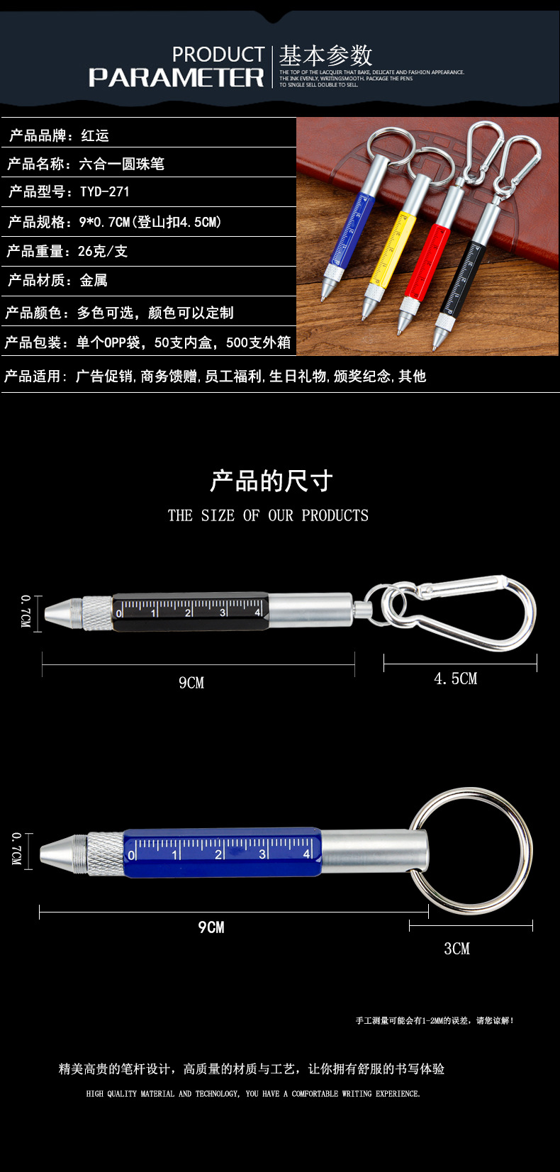 1pc Outdoor Keychain Tool Pen Six-in-One Screwdriver Scale Ruler Capacitor Pen