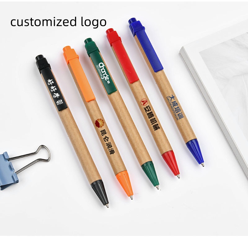 2pcs/set creative stationery kraft paper tube custom logo hotel conference event advertising ballpoint pen