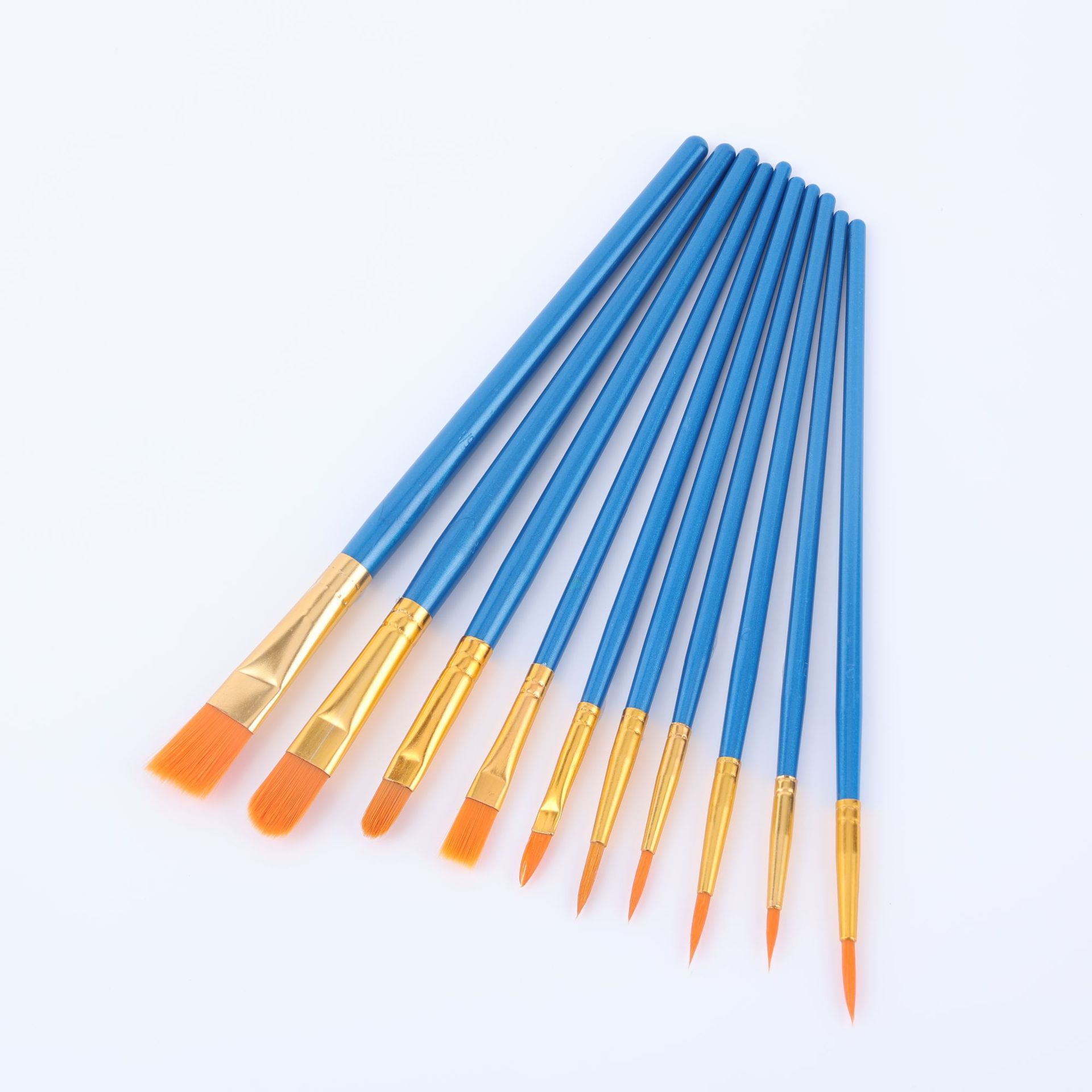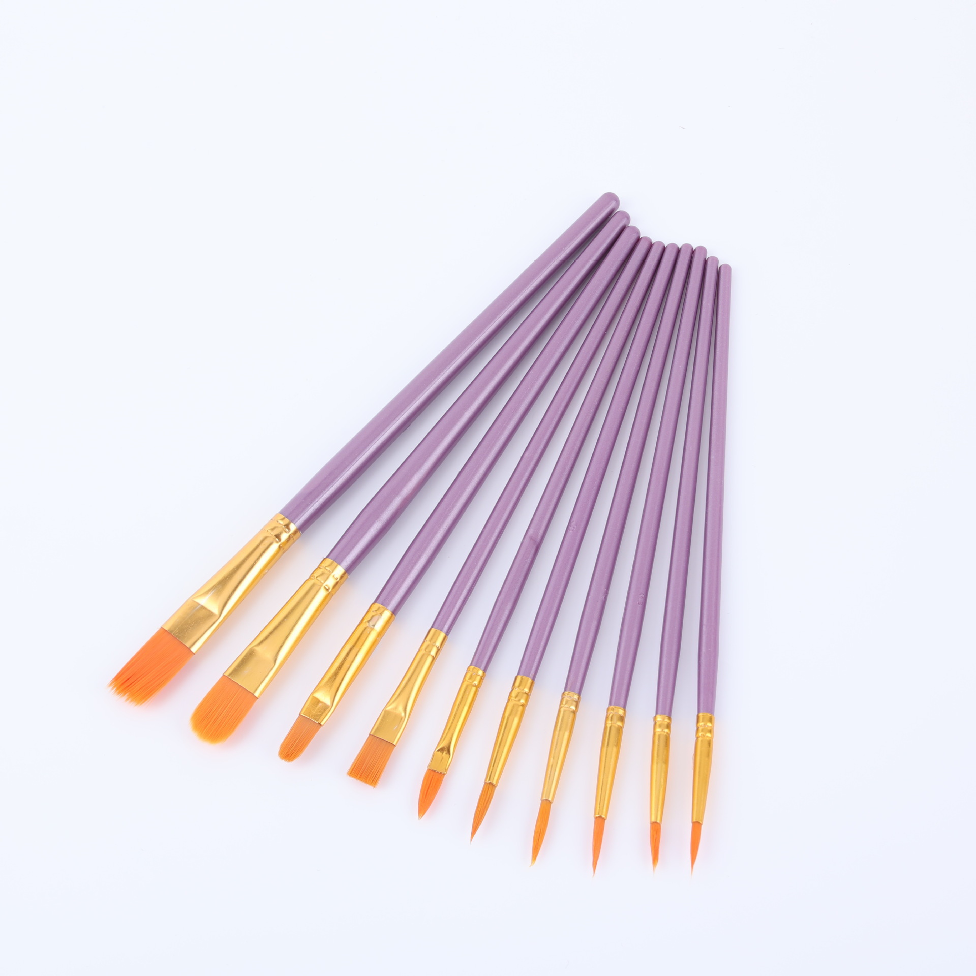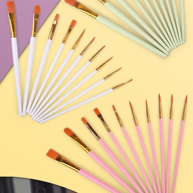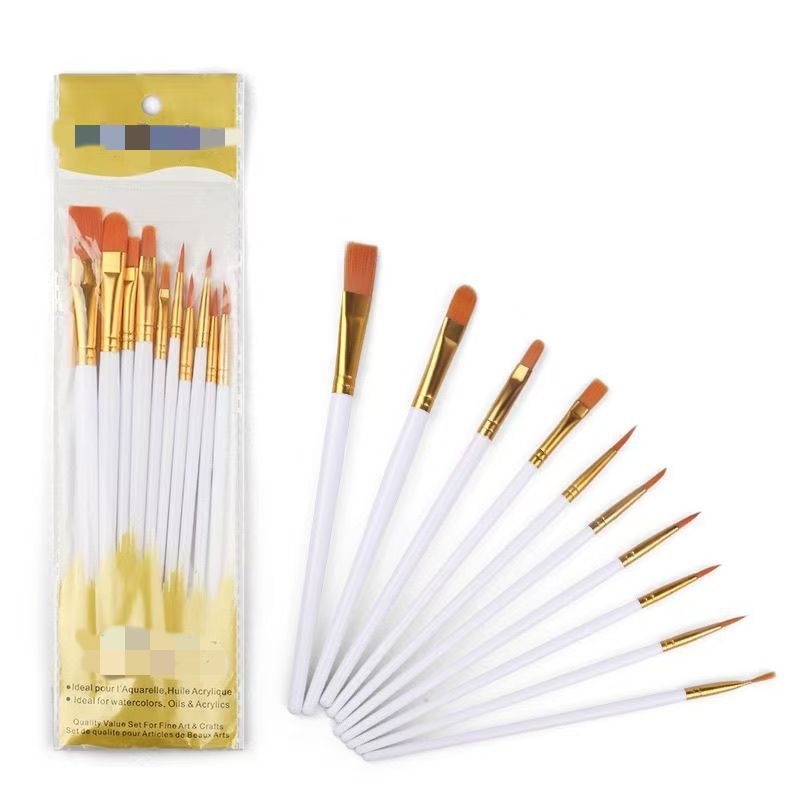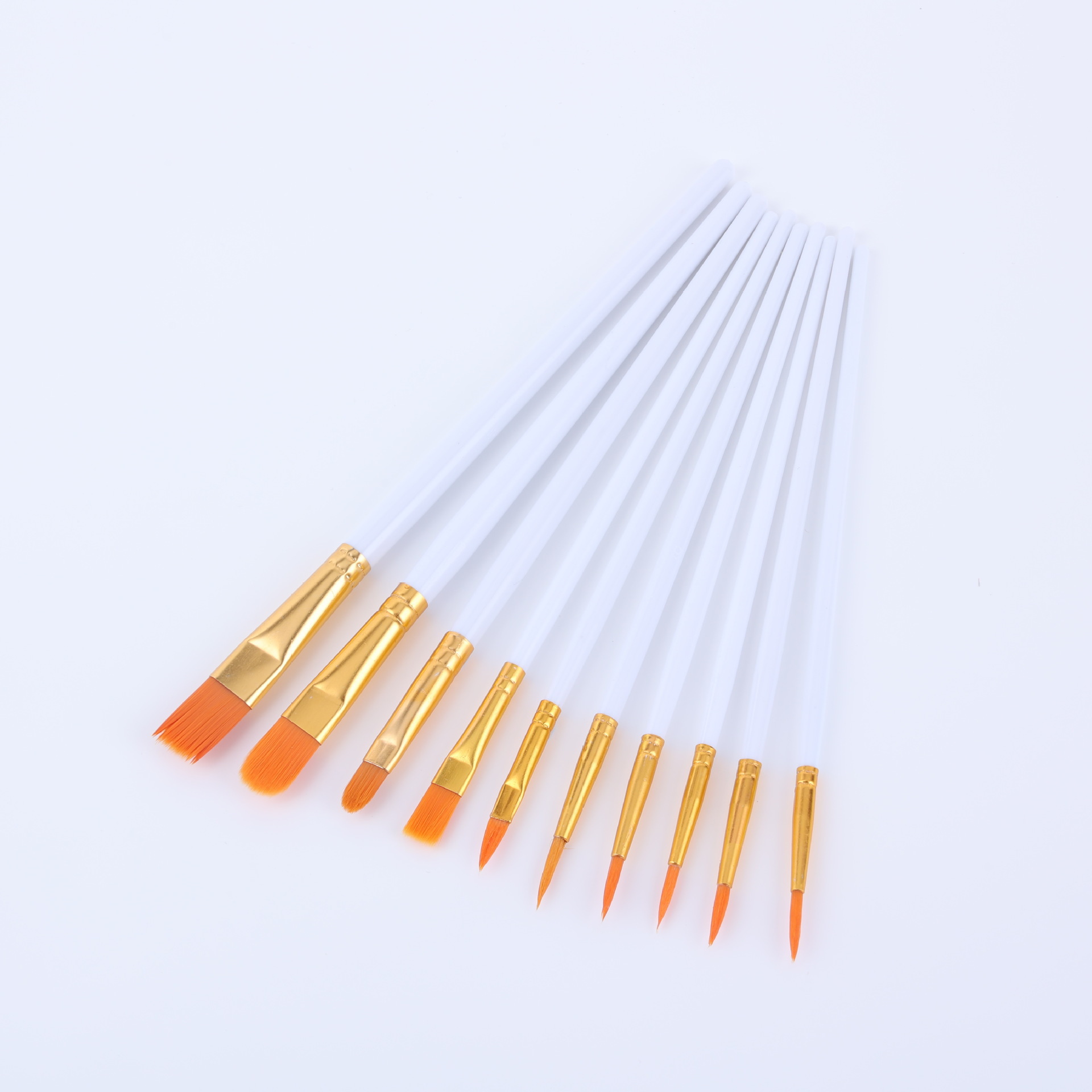 10pcs/bag Pearlescent Plastic Handle Oil Paint Brush Set for Beginners Children’s Painting