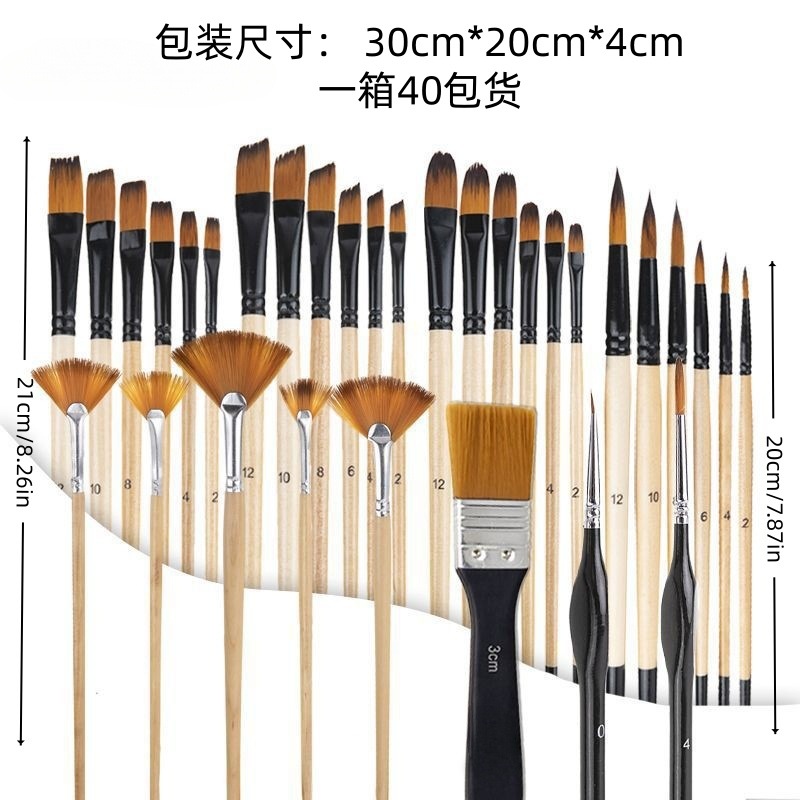32pcs/set wooden nylon board fan-shaped oil painting brush
