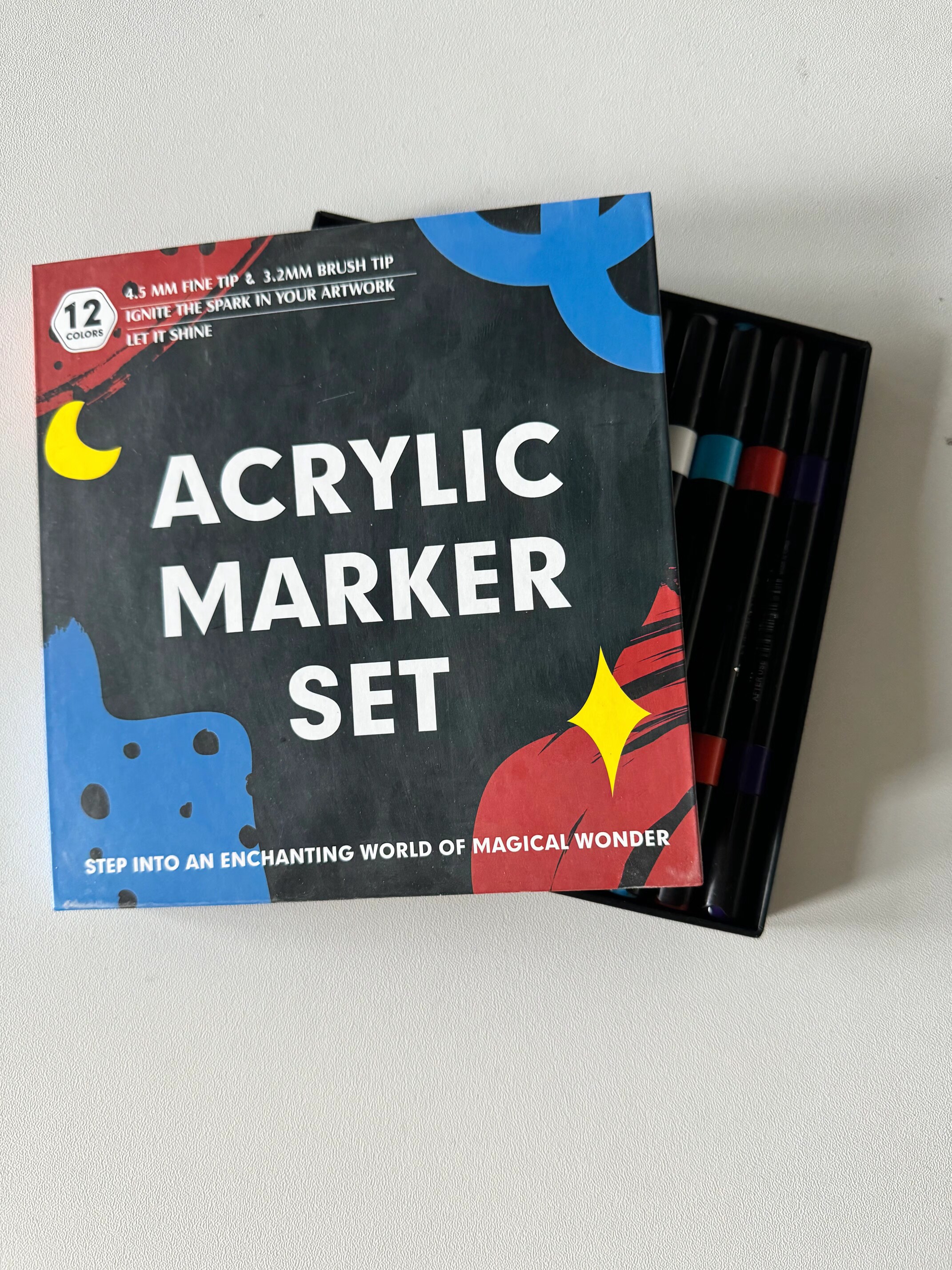 12pcs/box Acrylic marker with a doodle tip double-ended water-based acrylic pen