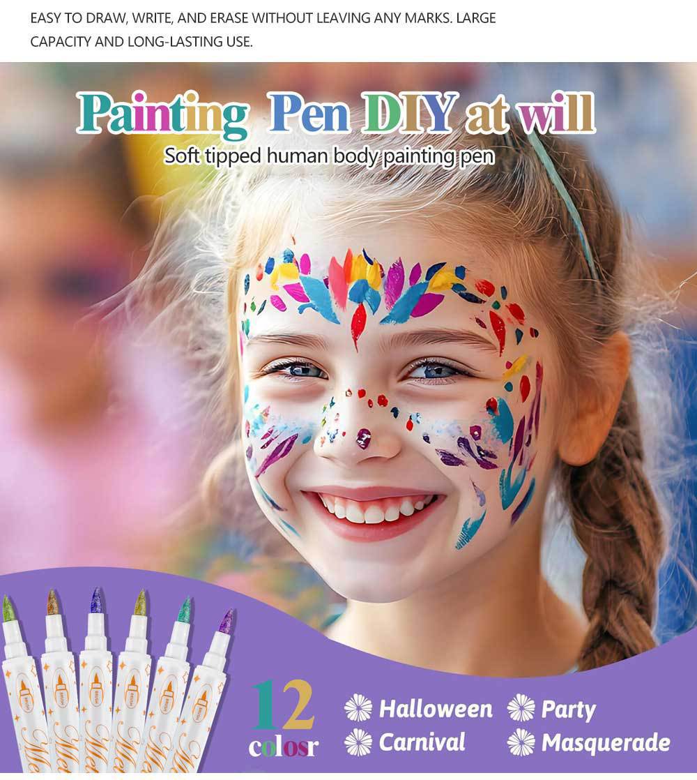 12pcs/box Body Painting Pen DIY Drawing Ins Stylish Glitter Pen