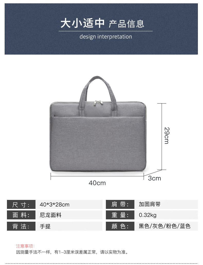 1pc 14 inch portable laptop bag solid color anti-collision anti drop waterproof briefcase advertising tablet bag