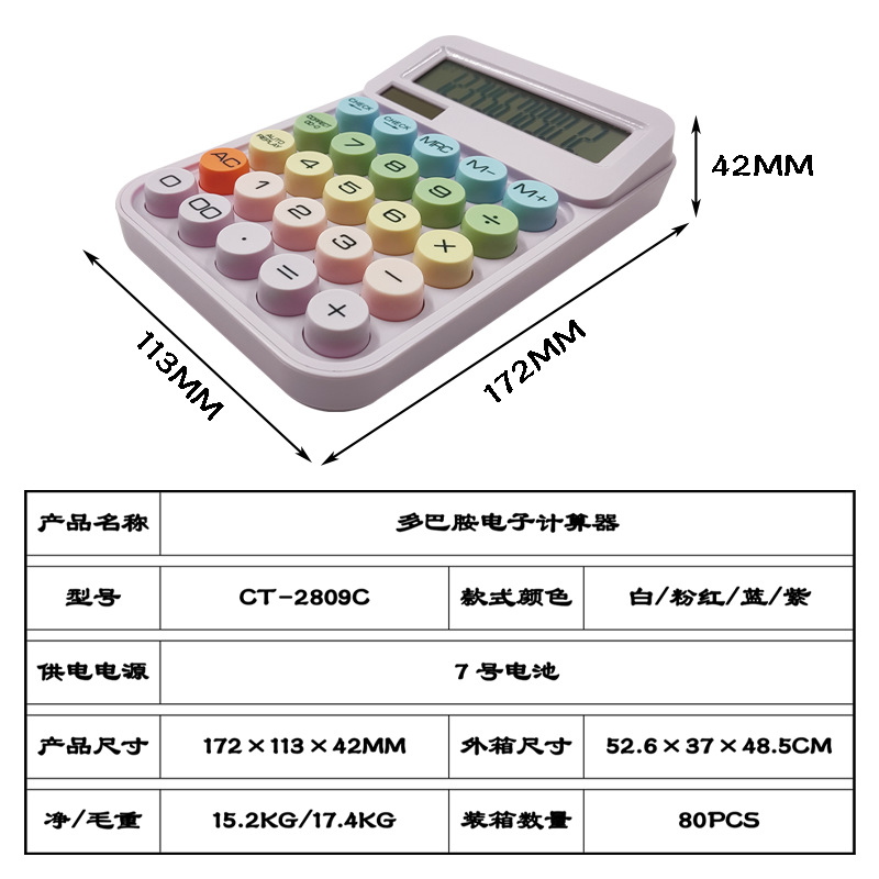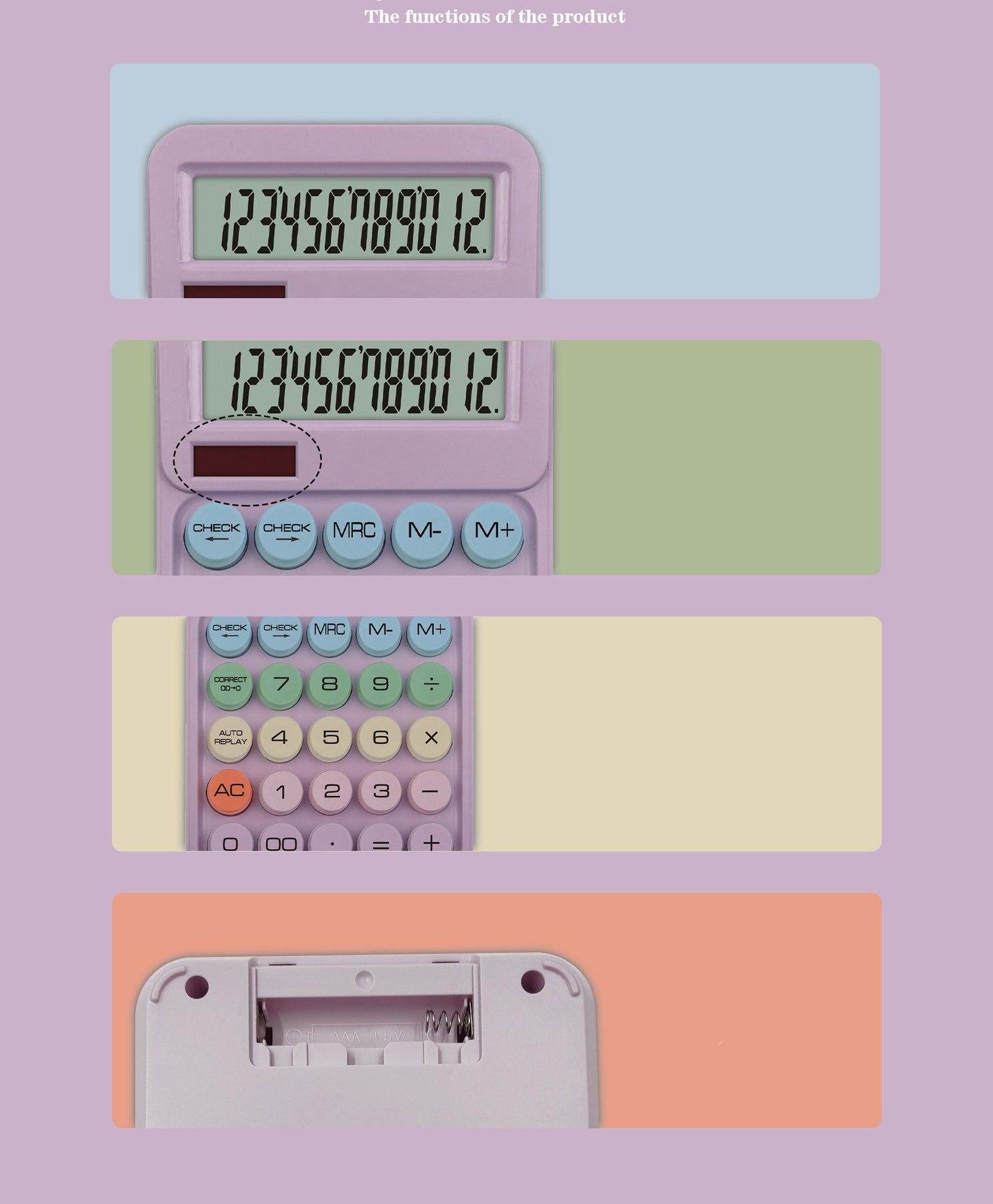 1pc Flexible Keyboard True Solar Macaron Color 12-Digit Office Calculator