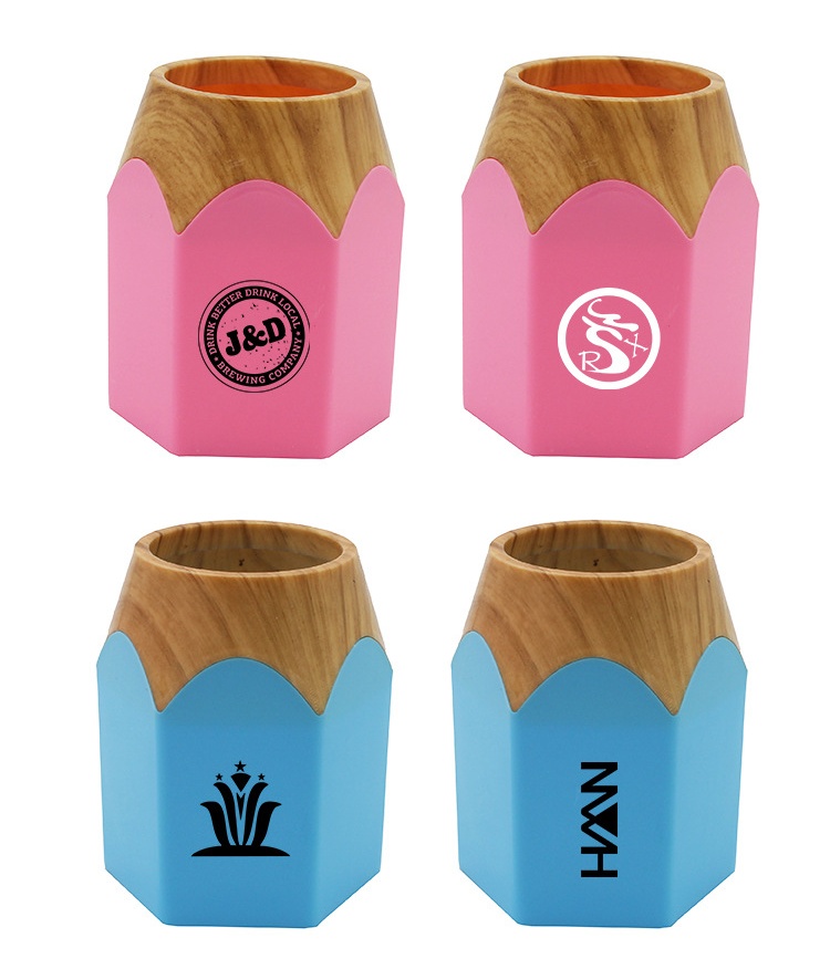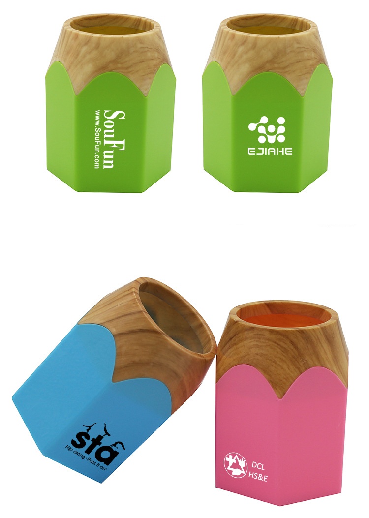 1pc Custom wooden grain pen holder can print logo company promotional gift student prize with text