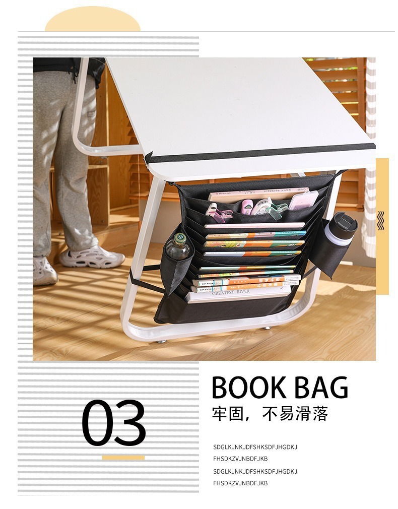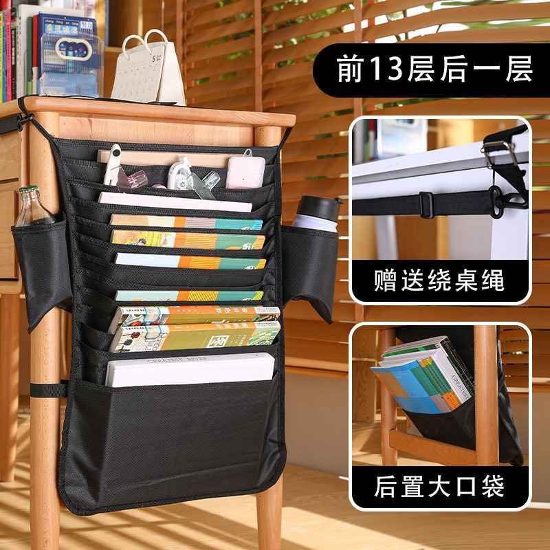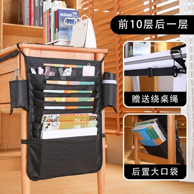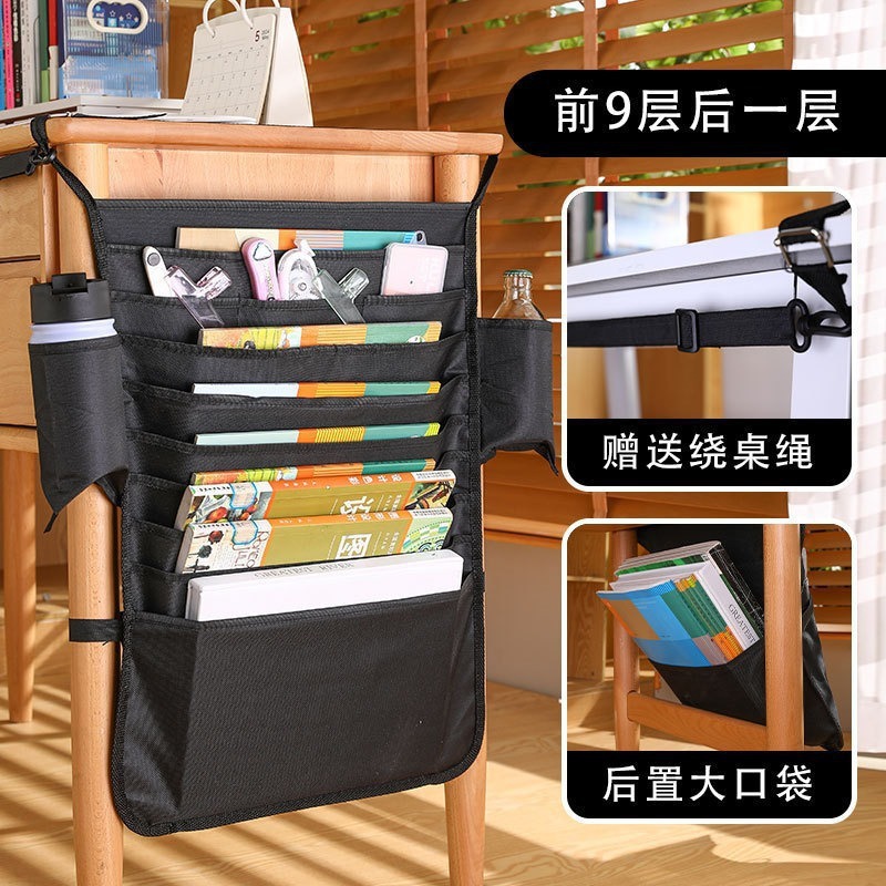 1pc Thick and large-capacity Oxford cloth book hanging bag for students, multi-layer learning storage bag side-mounted on the desk for hanging books