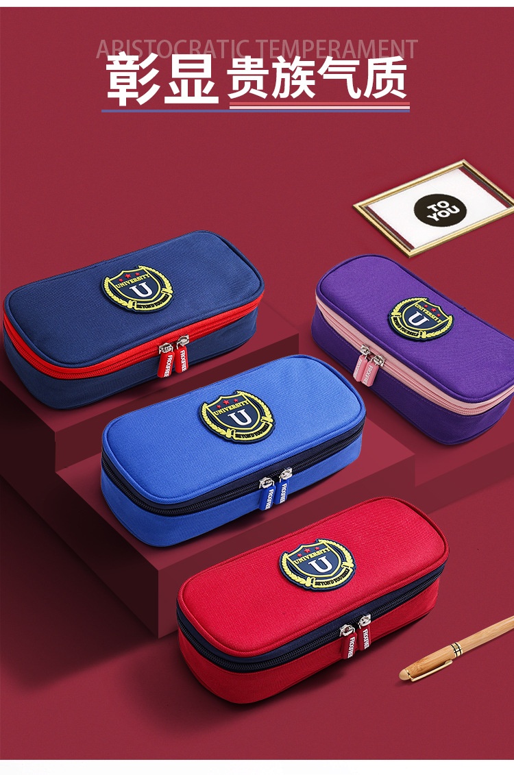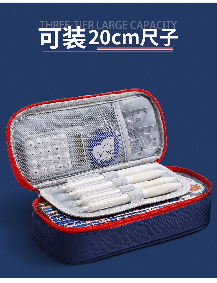 1pc British-style pencil case with three-tier Oxford fabric storage for elementary students large-capacity child's school supplies box