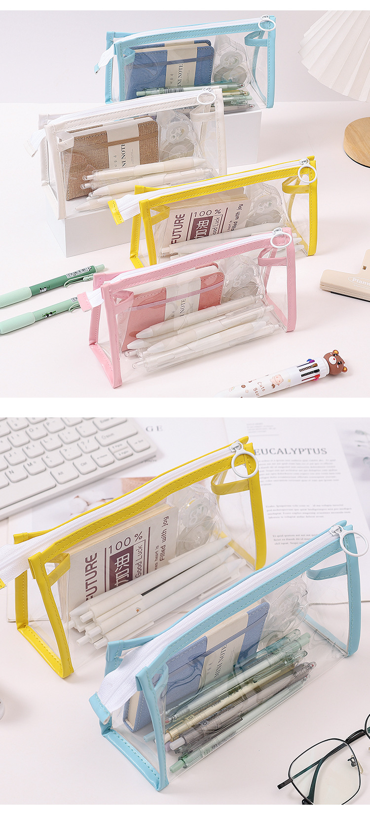 1pc Creative printing transparent pencil case student large capacity simple stationery box children's special niche wholesale