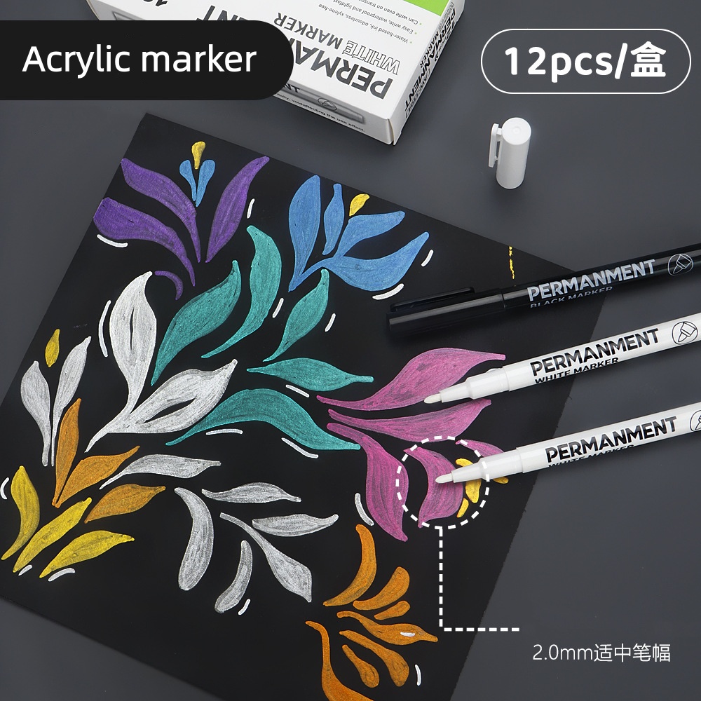 12pcs/box Marker Art Highlight Pen Waterproof and Fade-Resistant Oil-Based Pens