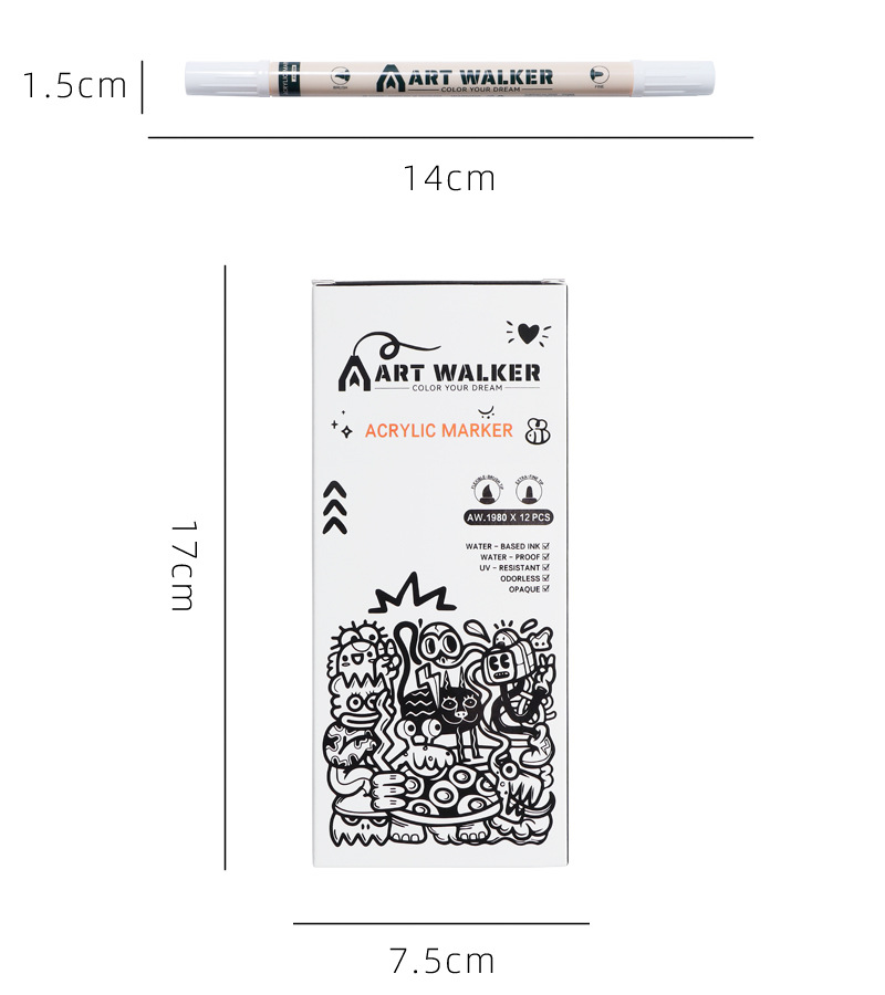12pcs/box Double-ended acrylic marker graffiti drawing pen