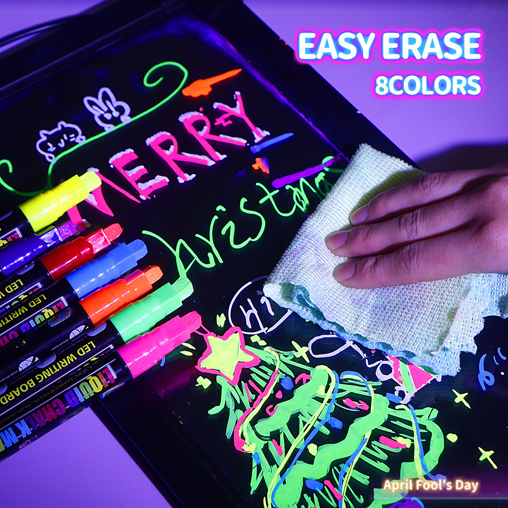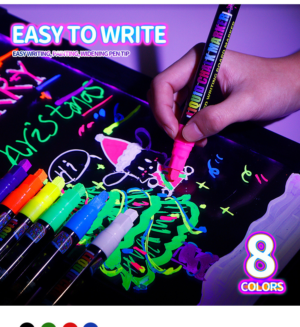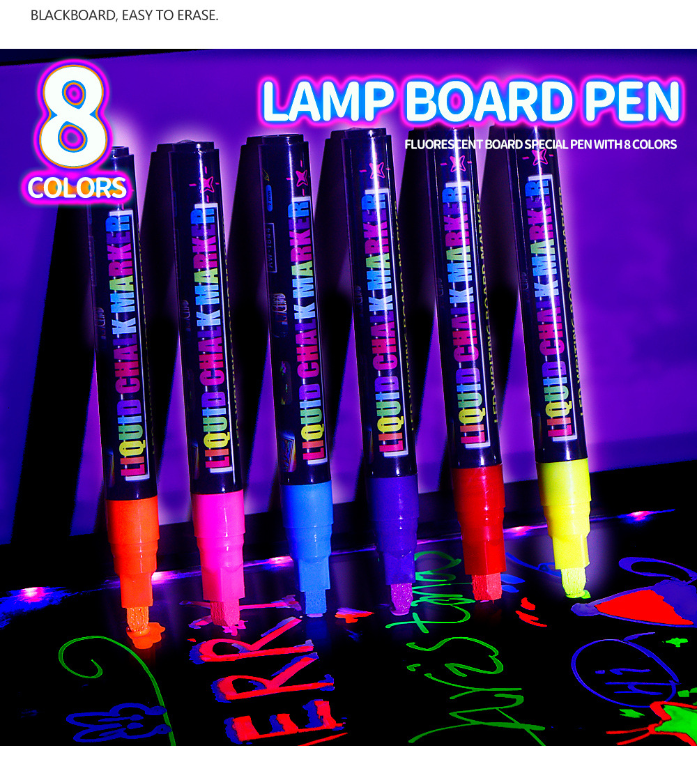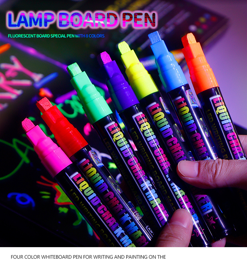 8colors/box Fluorescent board water-soluble dust-free handheld erasable marker