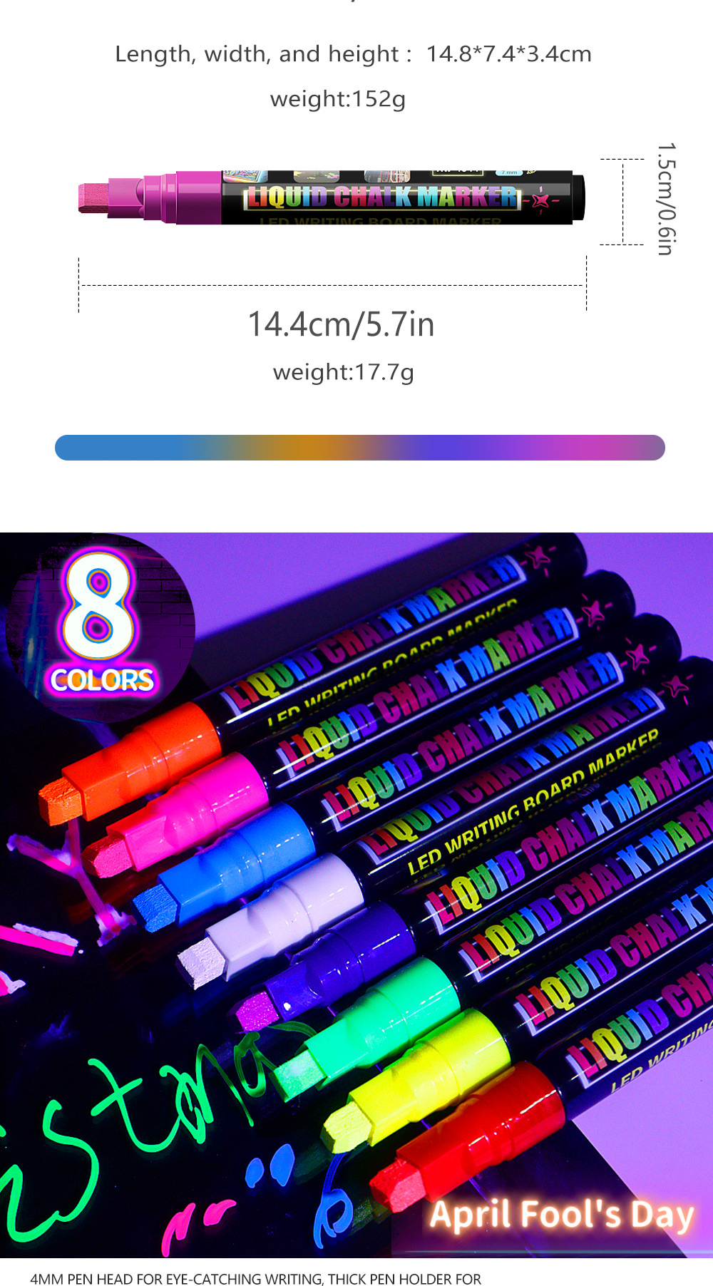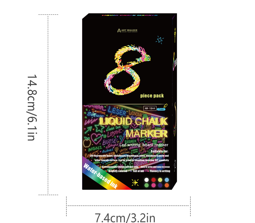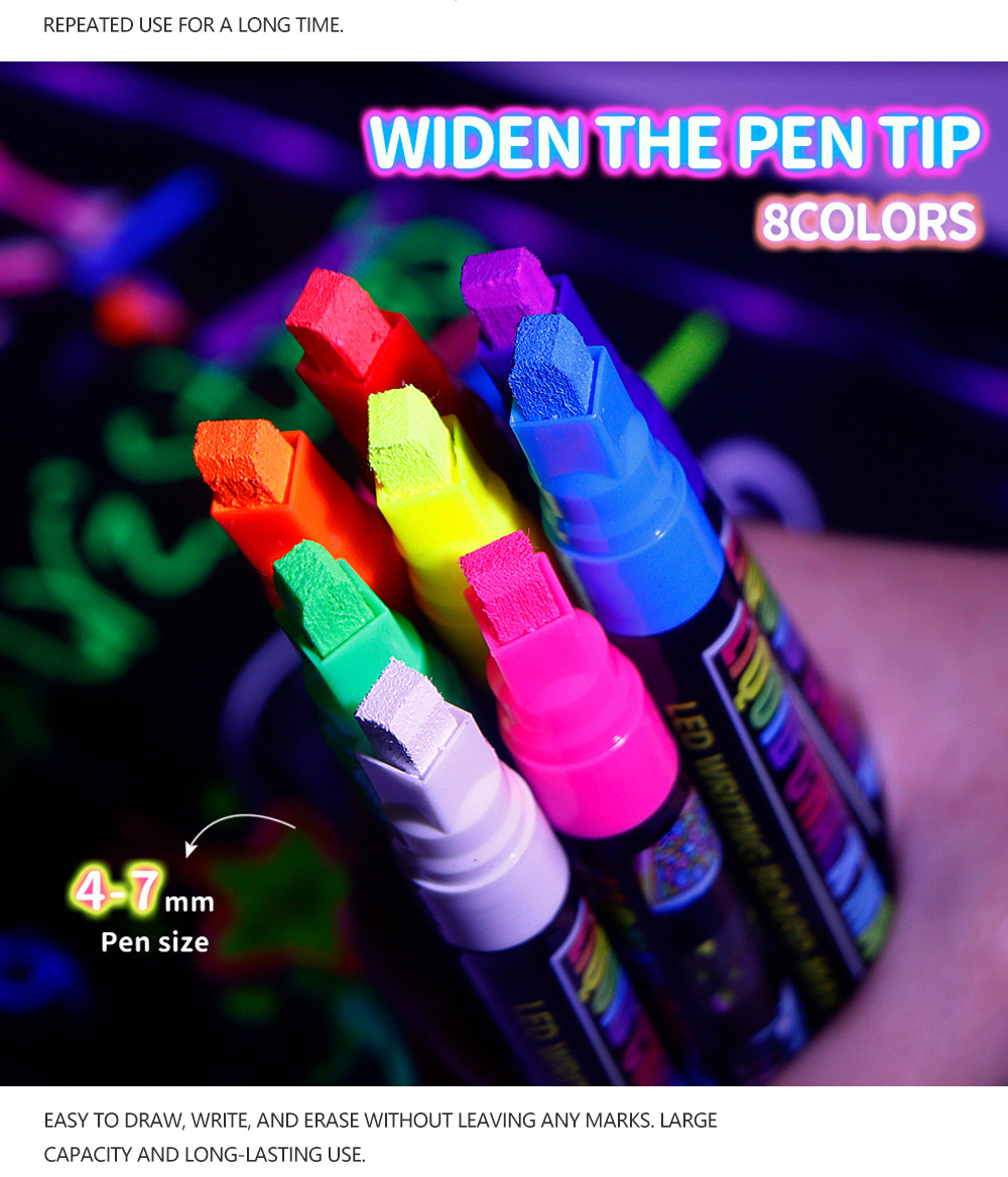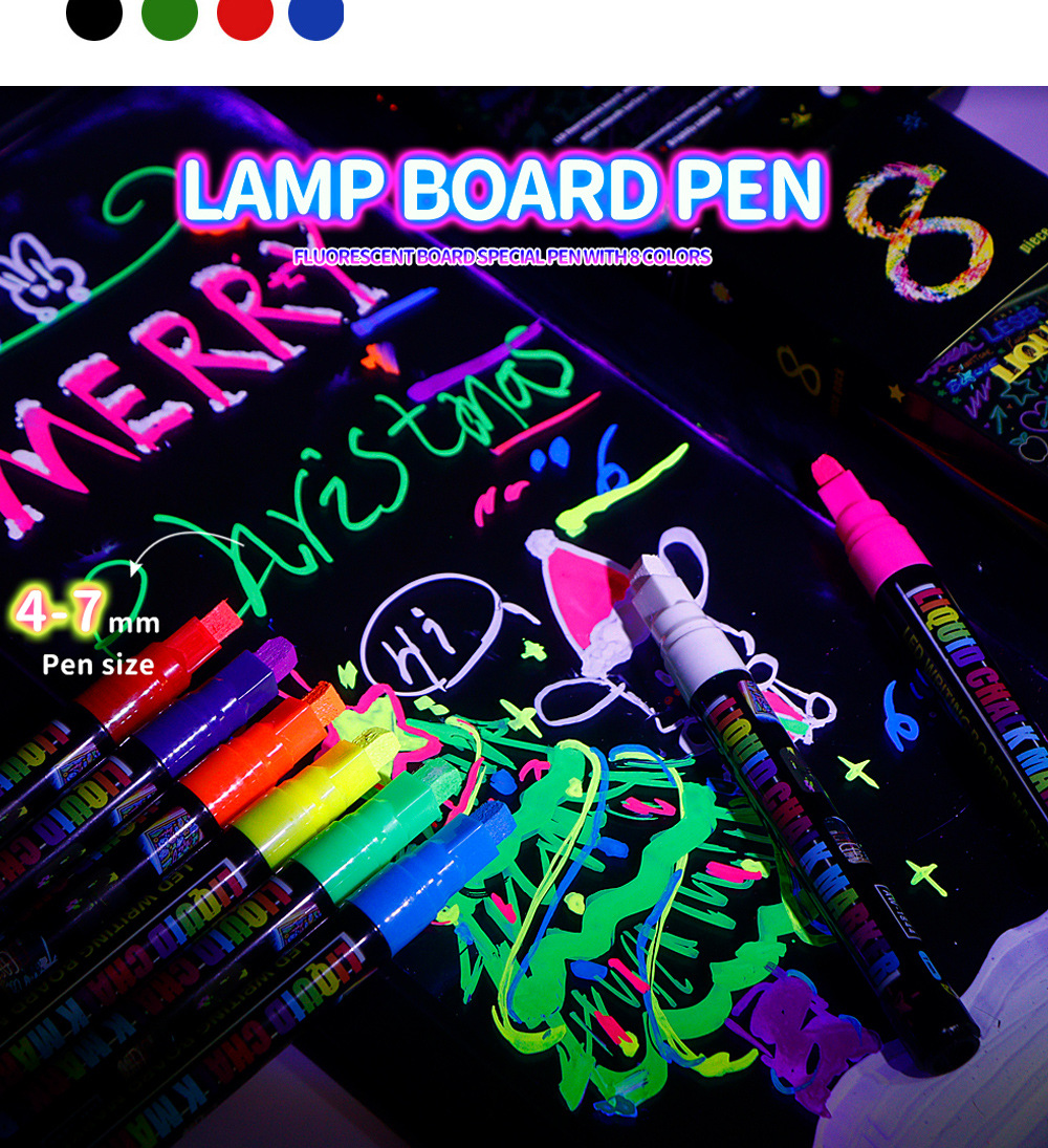8colors/box Fluorescent board water-soluble dust-free handheld erasable marker