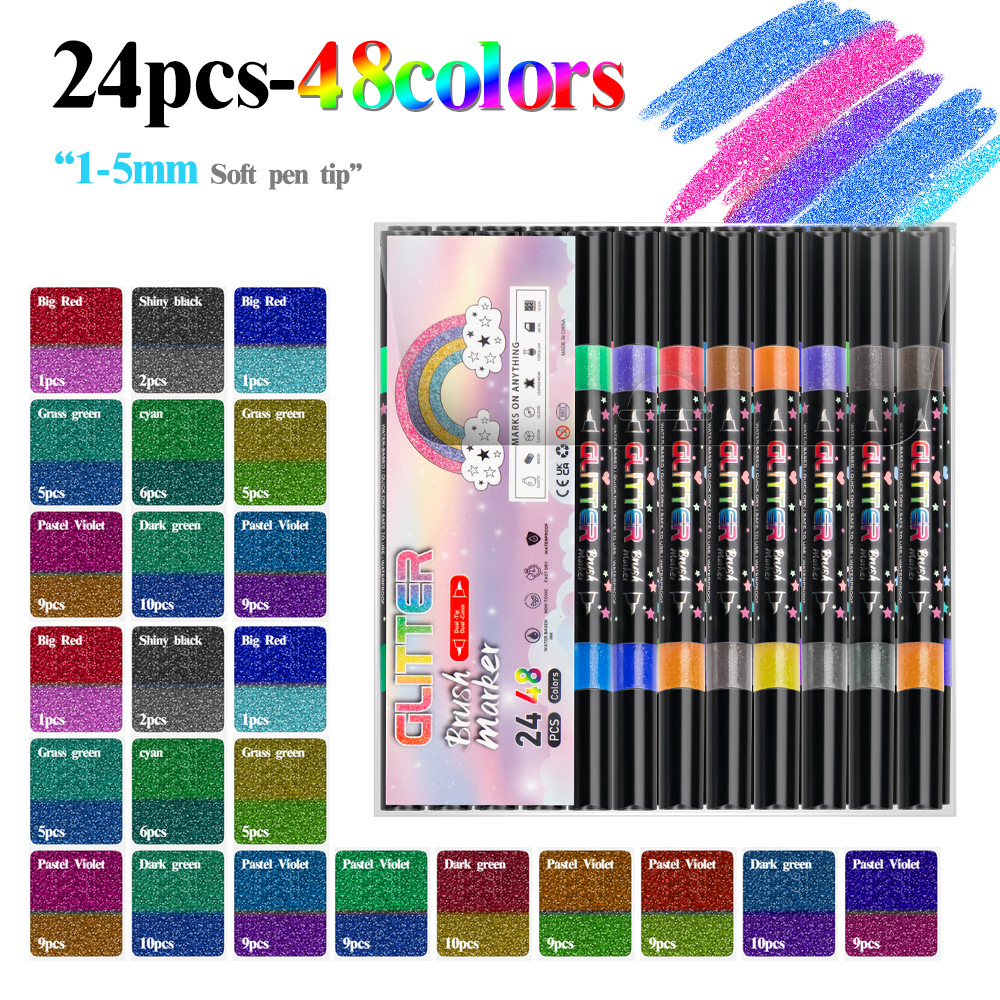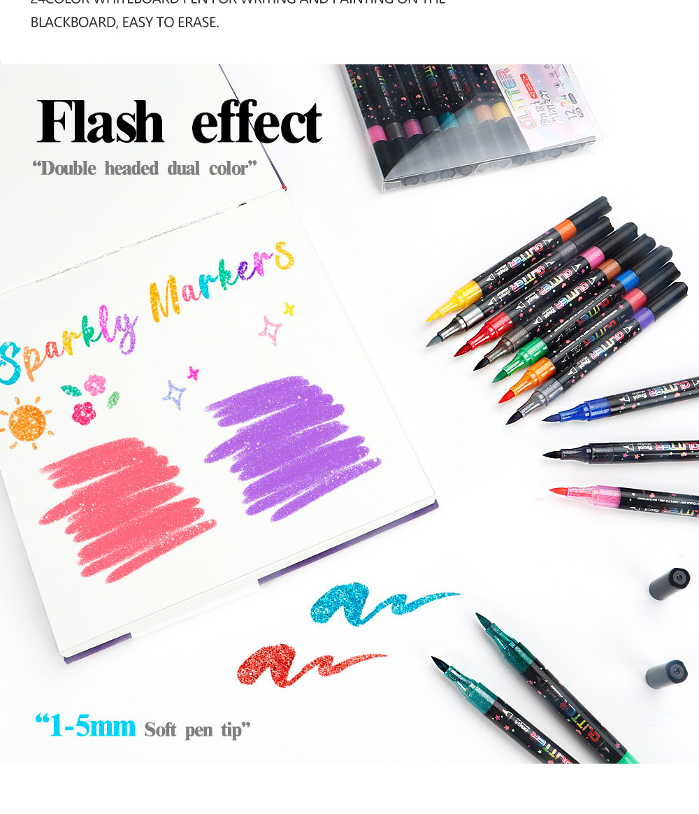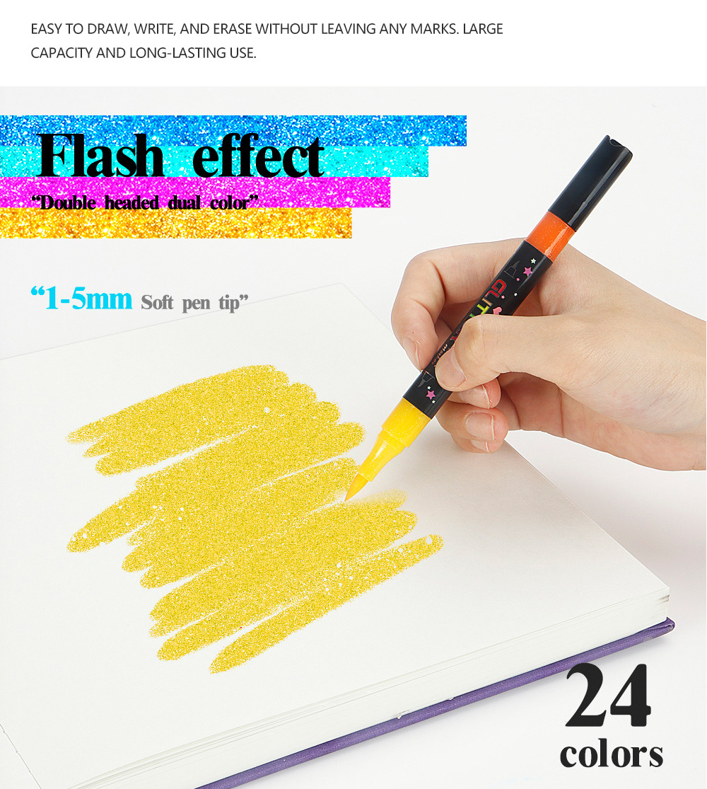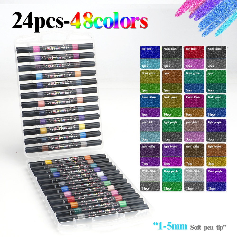 24Colors/box Acrylic Double-Ended Two-Color Glitter flash Marker Pen