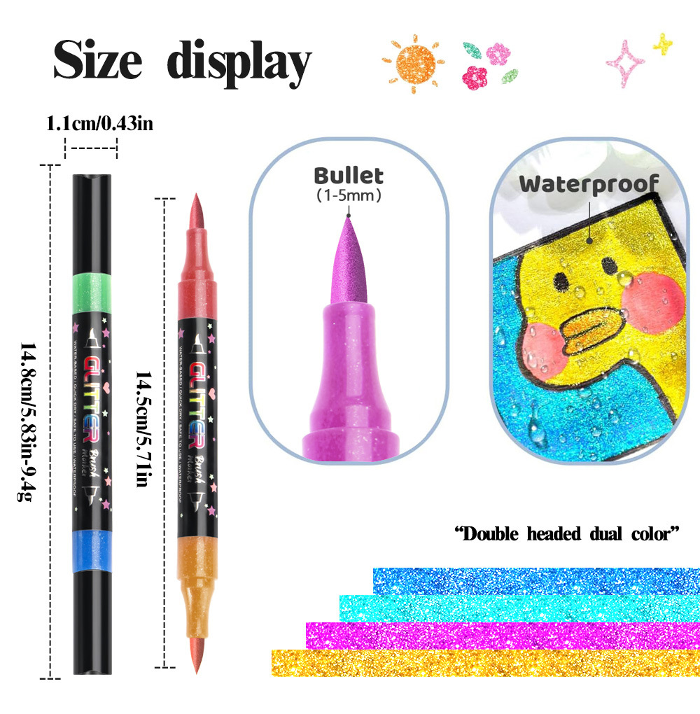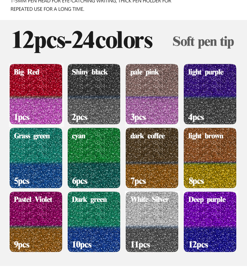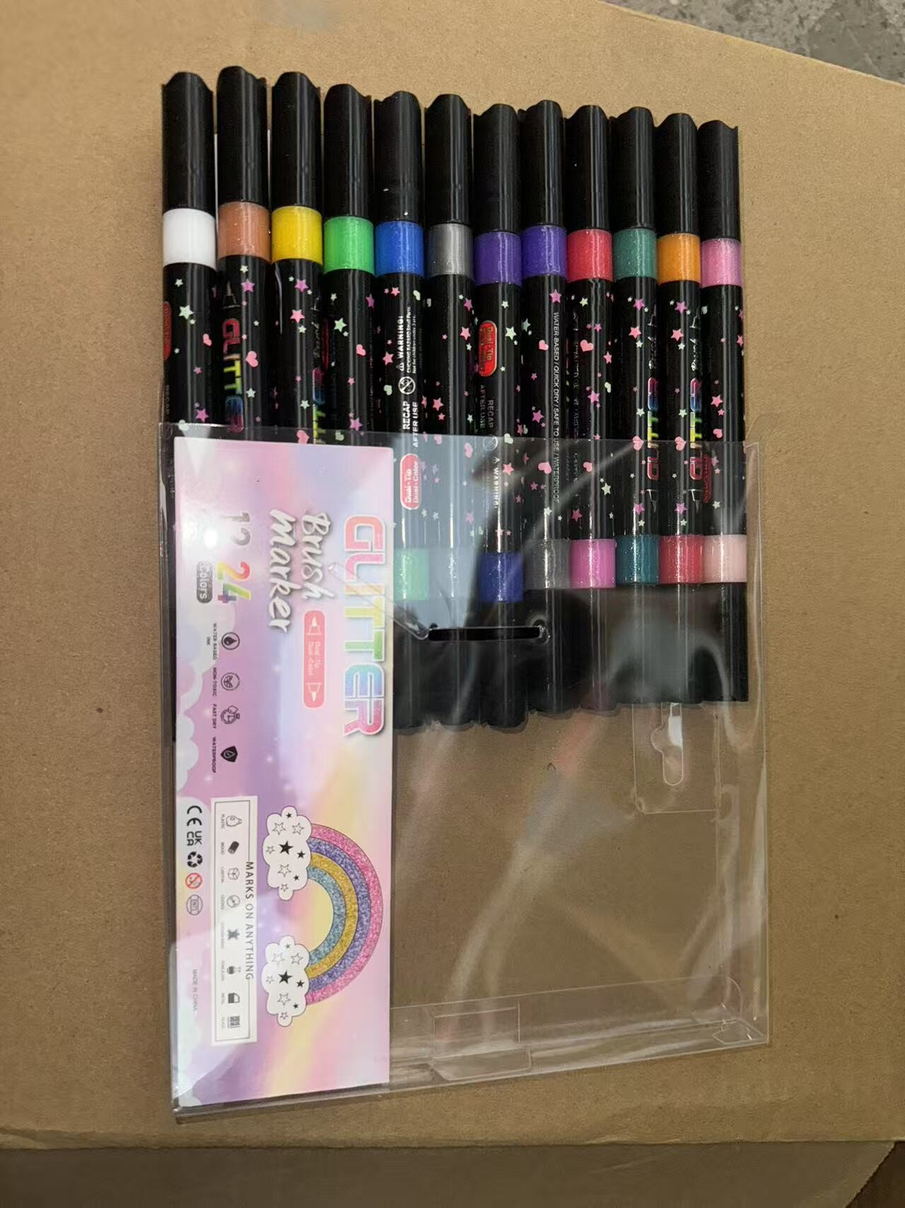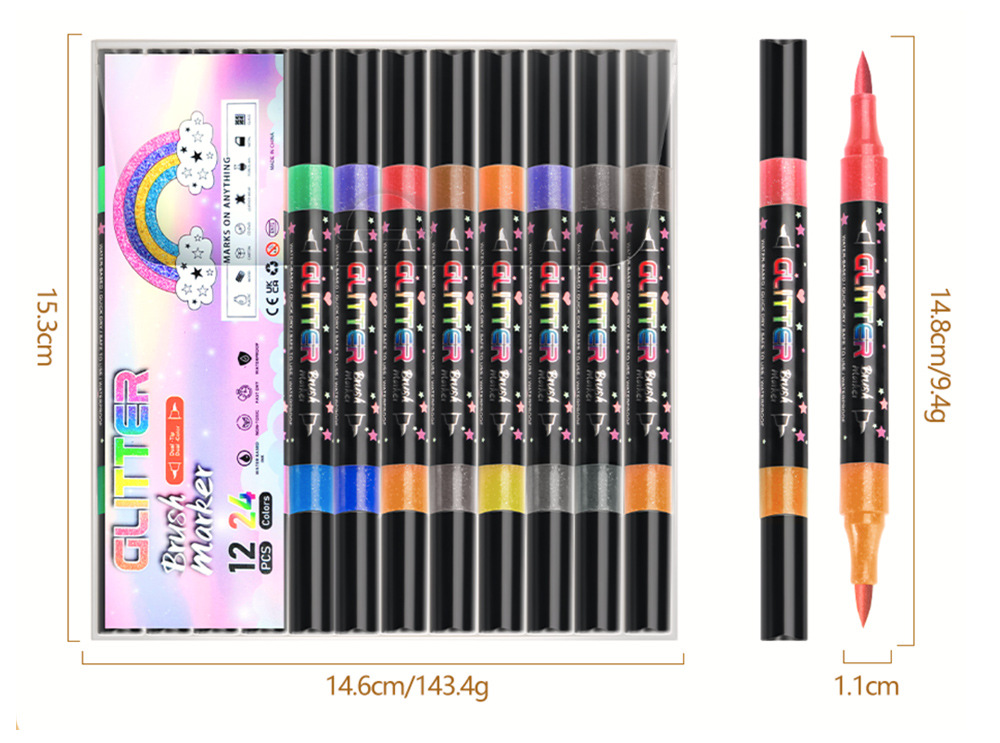 24Colors/box Acrylic Double-Ended Two-Color Glitter flash Marker Pen