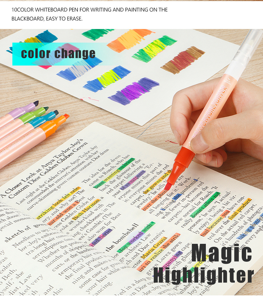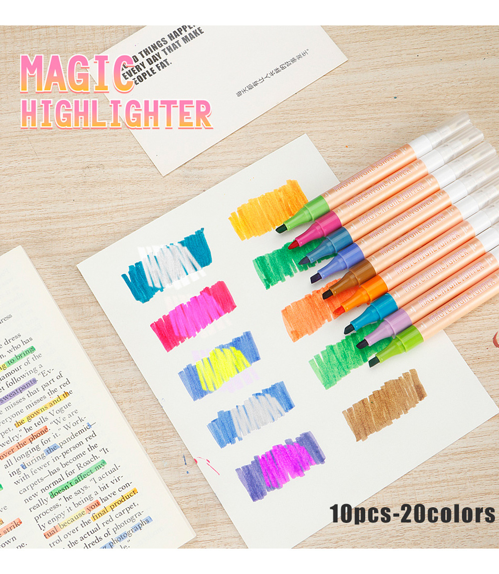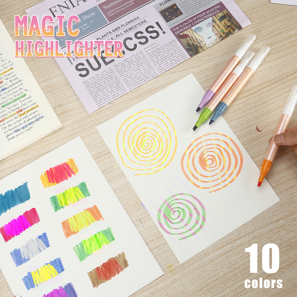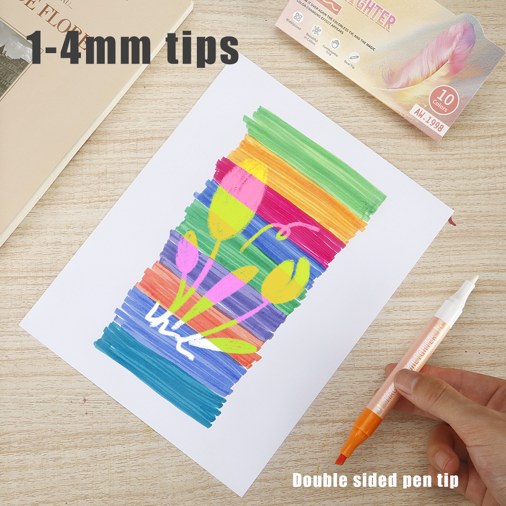 10pcs/box Double-Ended Erasable Highlighter DIY Drawing and Doodling Pen