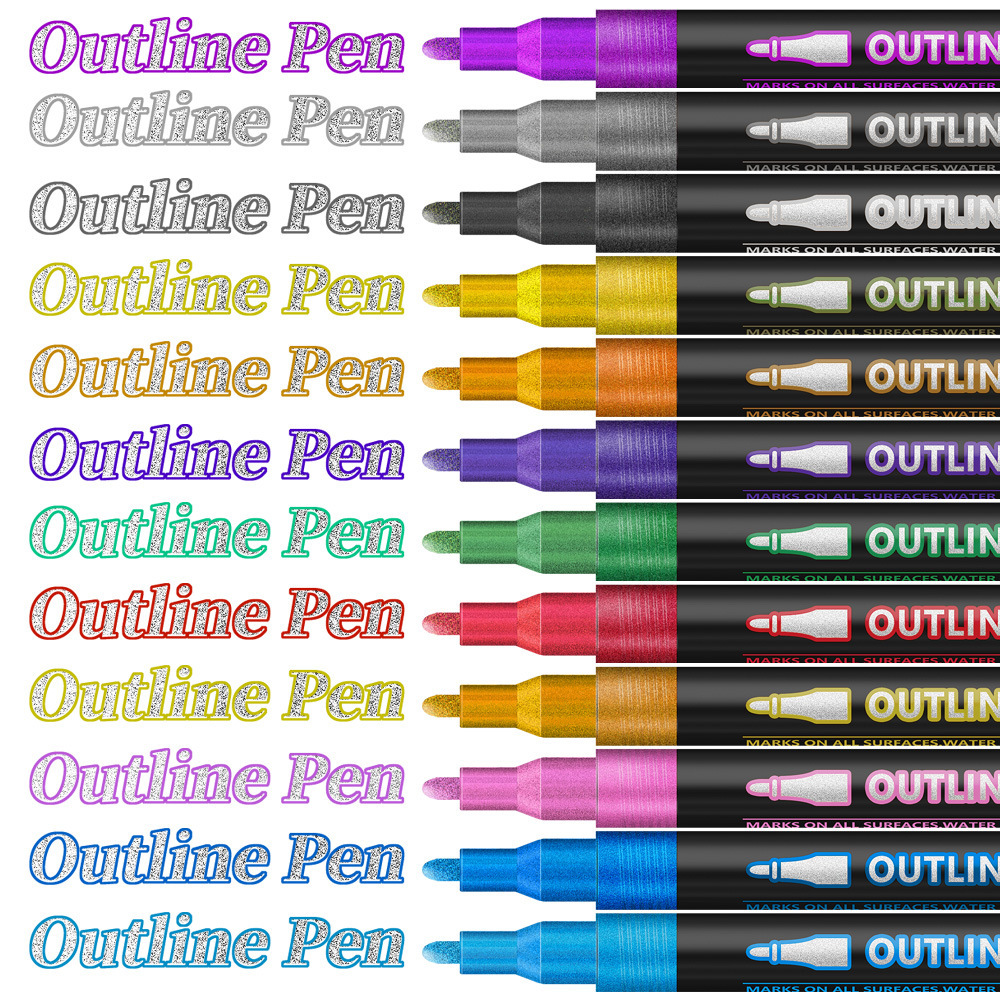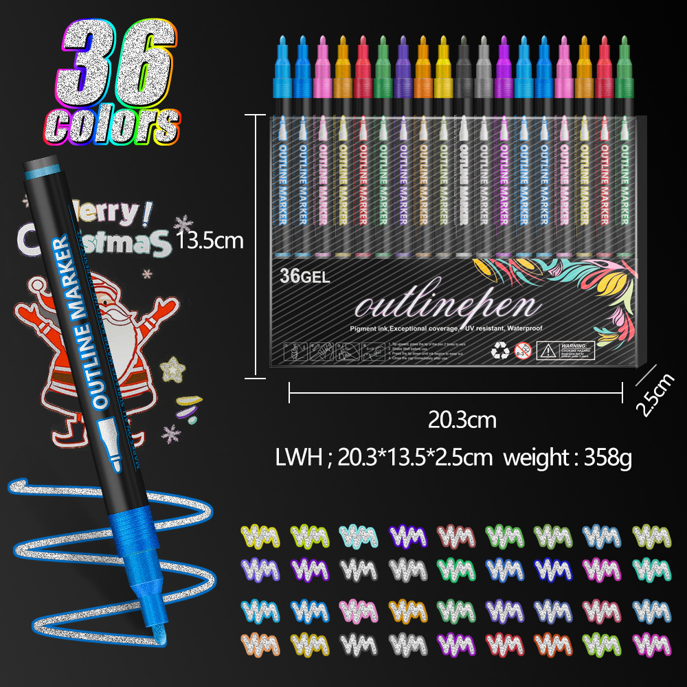 8colors/bag Dual-tip contour Christmas card glitter DIY journal pen marker highlighter