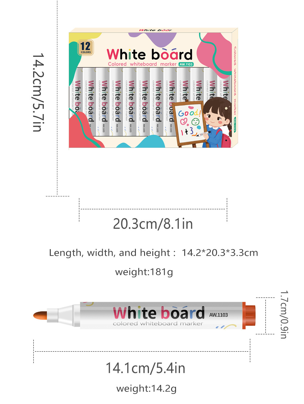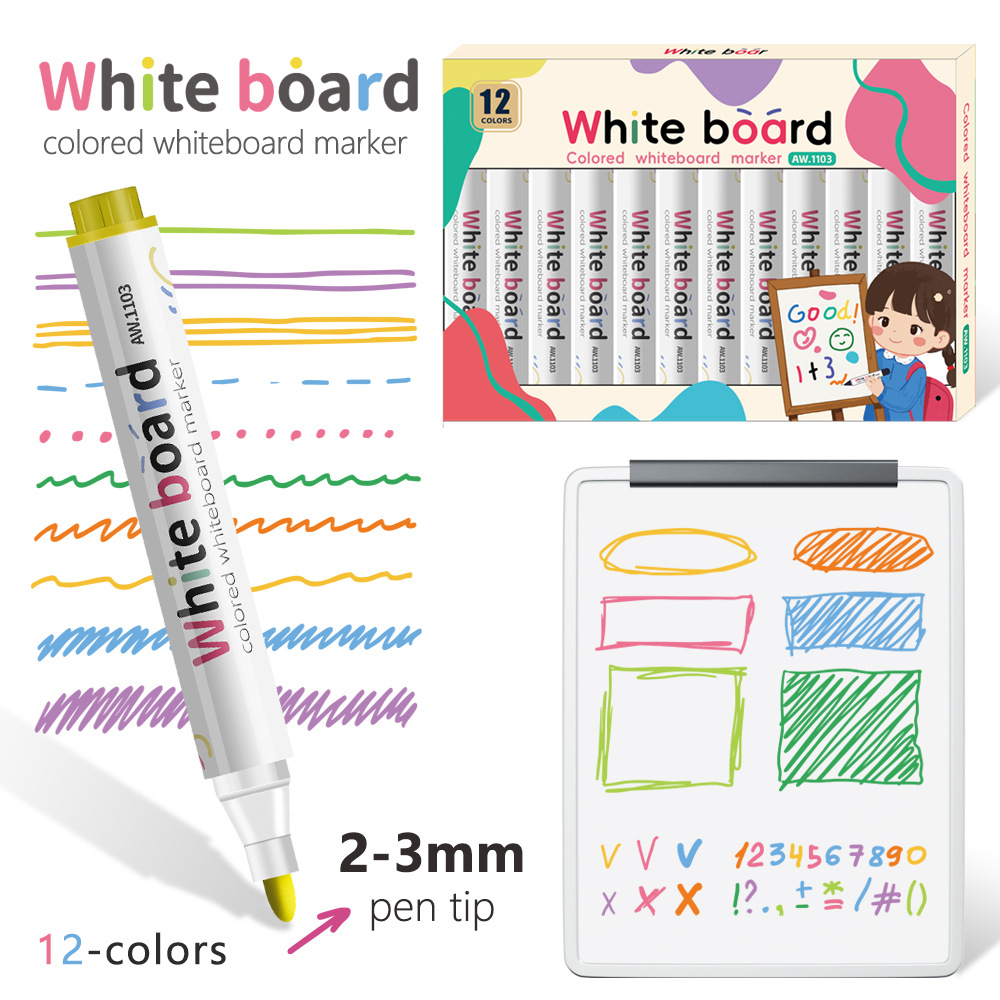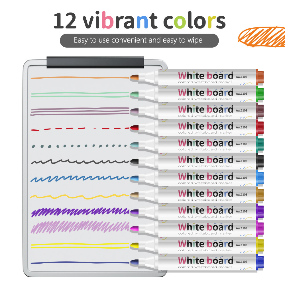 12colors/box Colorful erasable whiteboard marker