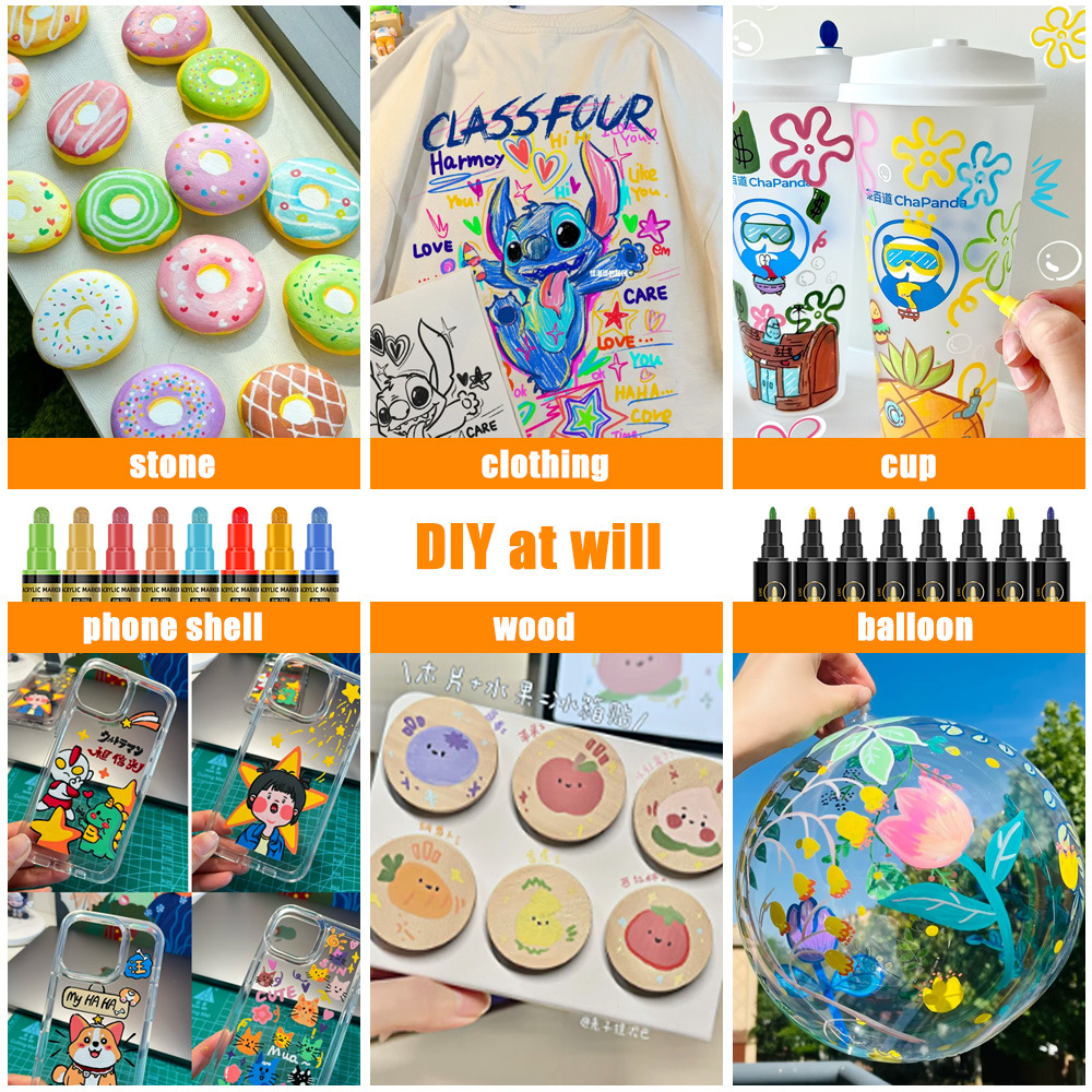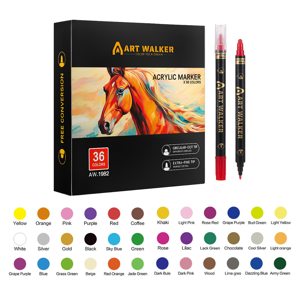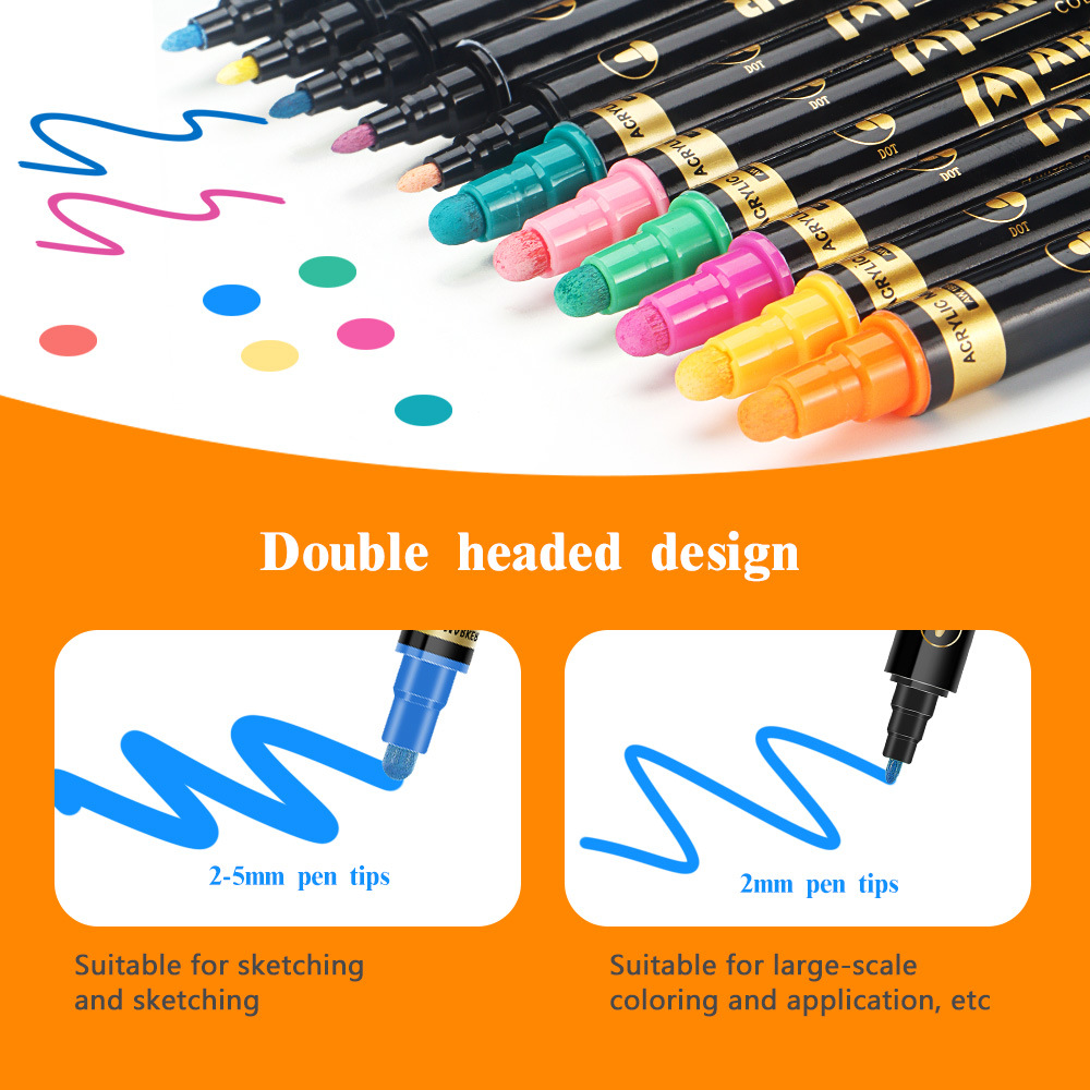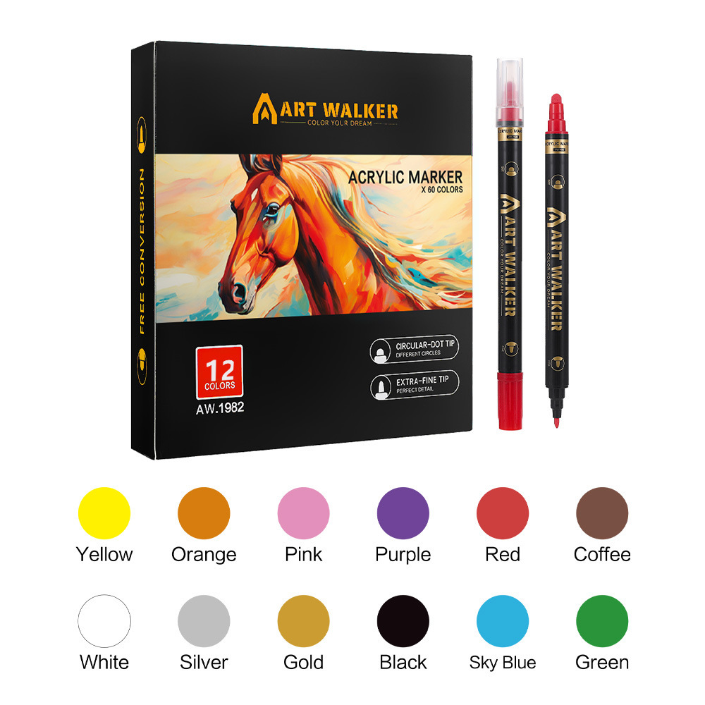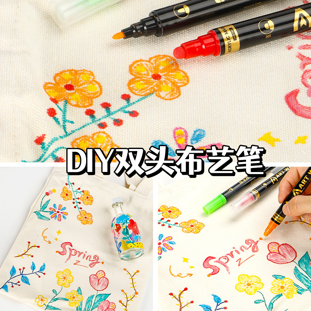 12pcs/box Acrylic Marker Double-Ended Quick-Dry Fabric DIY Arts and Crafts Pen