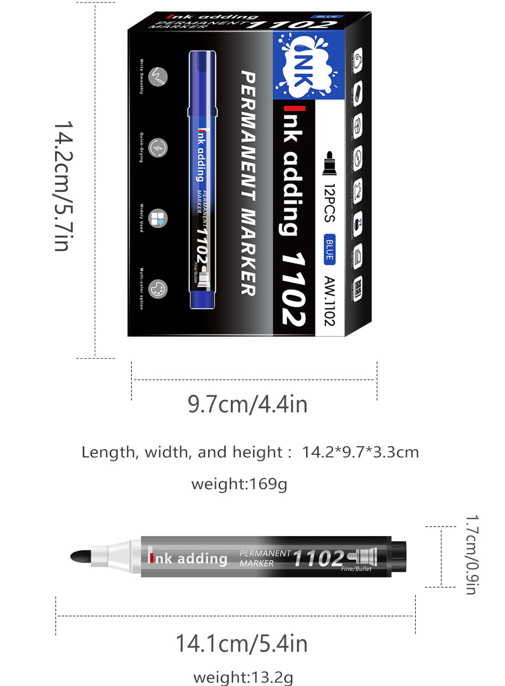 Product Name: 14.1cm High *1.7cm wide white marker pen