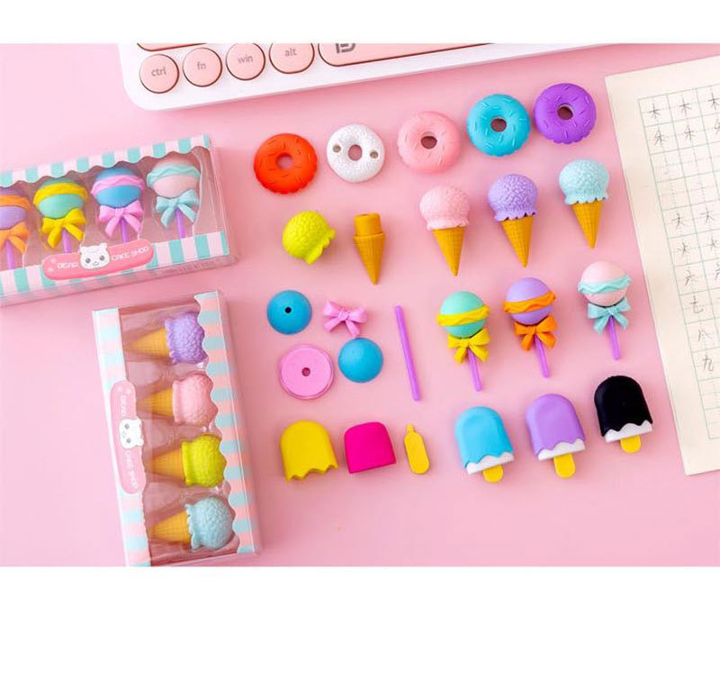 1box Donut Eraser Set Creative Cartoon Cute Children's School Supplies