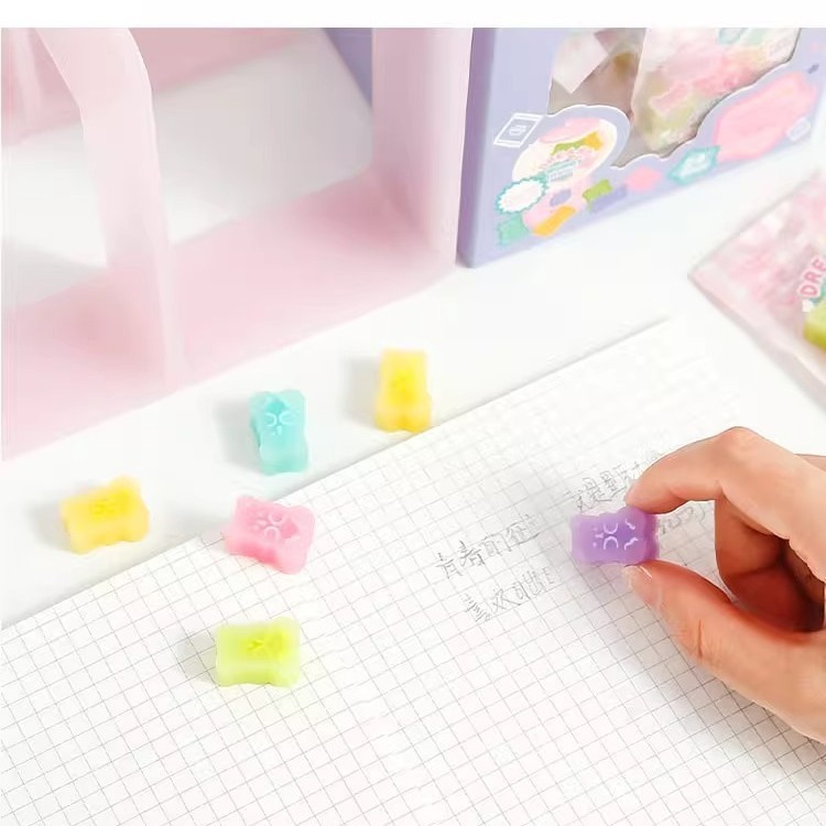 90pcs/box Small Bear Eraser Packaged Cartoon Primary School Student Pencil Erasers