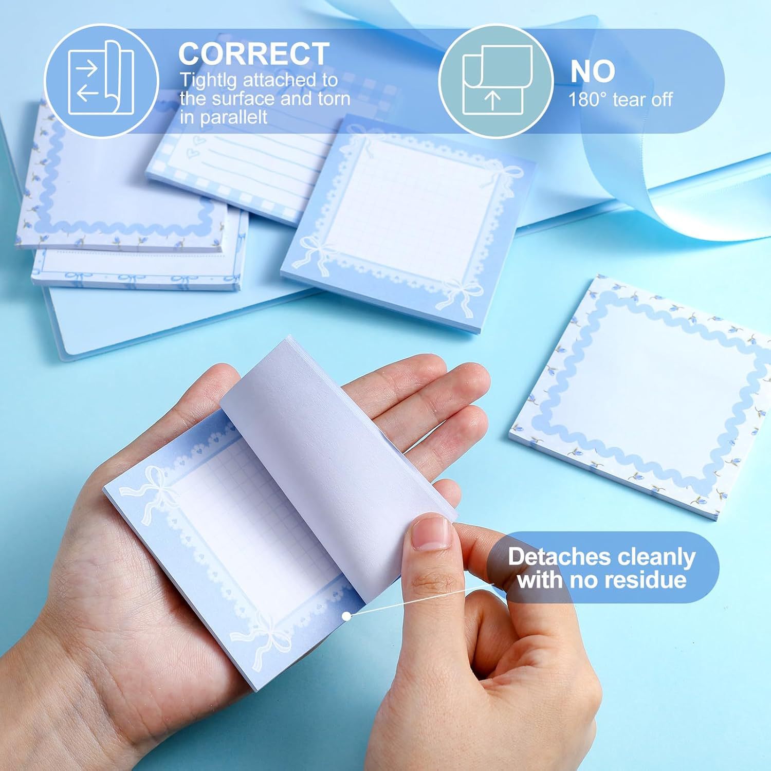4pcs/set Bowknot Sticky Notes Cute Reusable with Strong Adhesion Creative Student Marking Notes